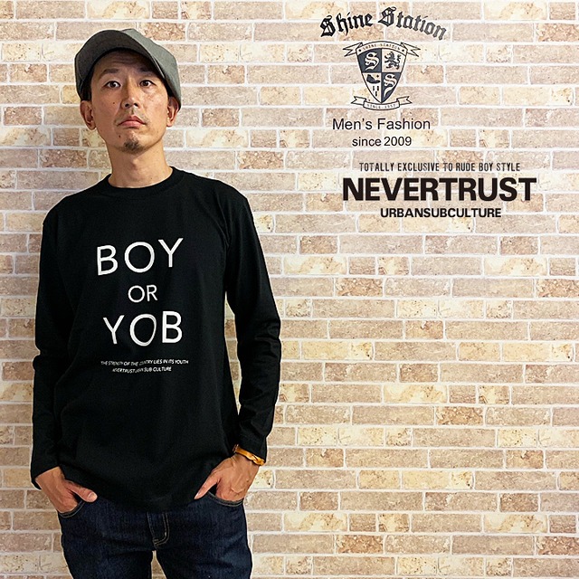 【ネバートラスト】BOY OR YOB 長袖Tシャツ カラー:ブラック