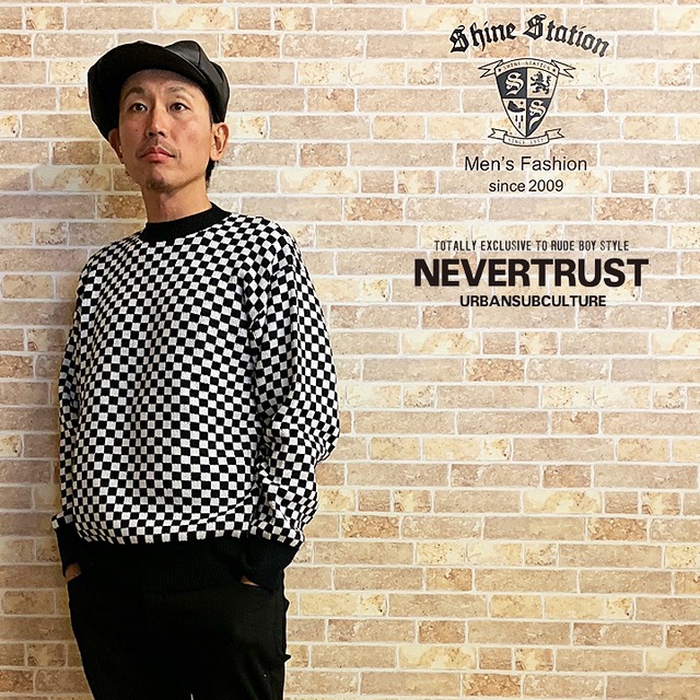 【ネバートラスト】チェッカープルオーバー・セーター カラー:ブラック