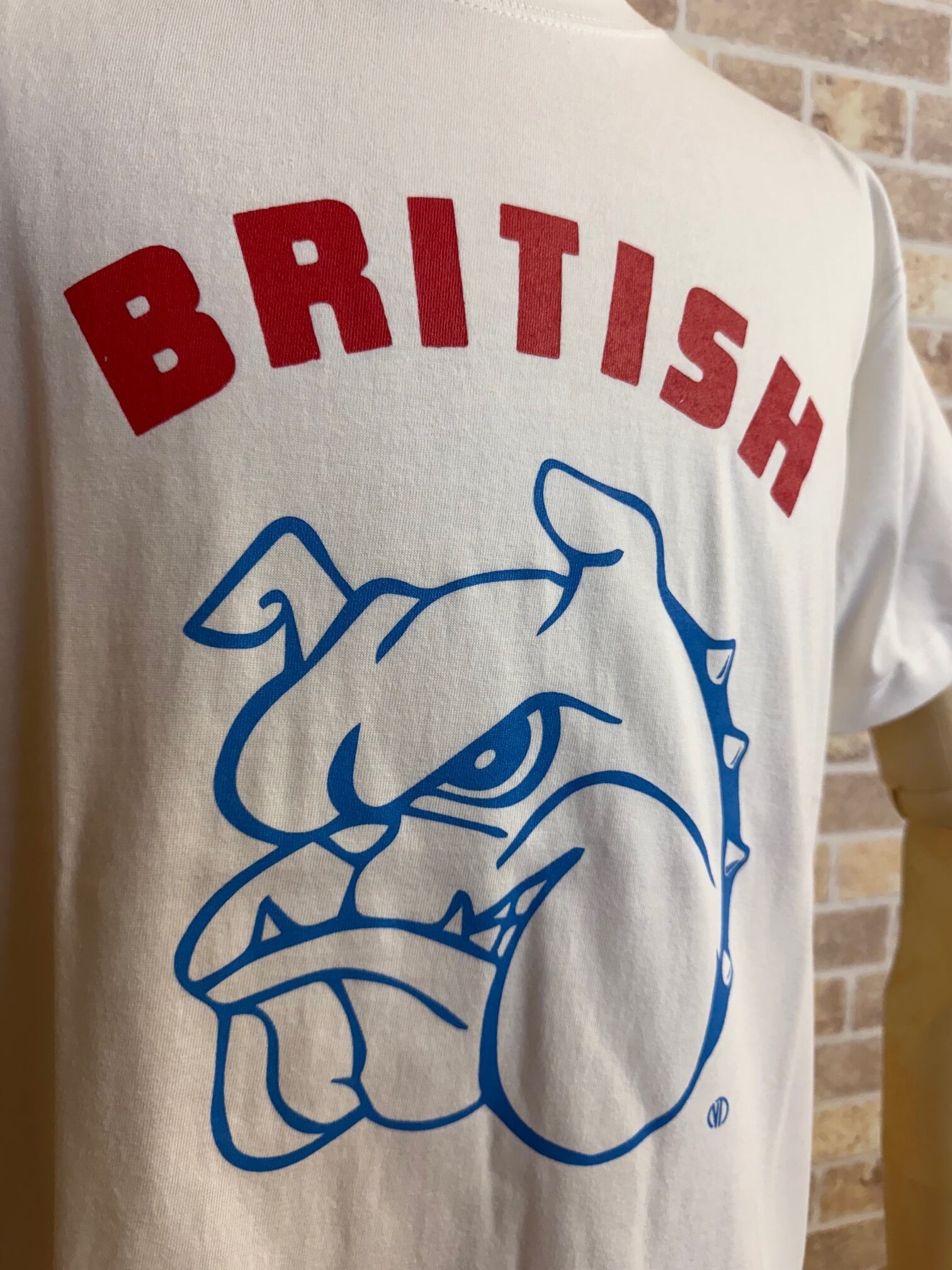 イギリスの国犬として愛されてるブルドッグのイラストをモチーフに、分かりやすくシンプルに「BRITISH」の文字をプリントしたTシャツ。