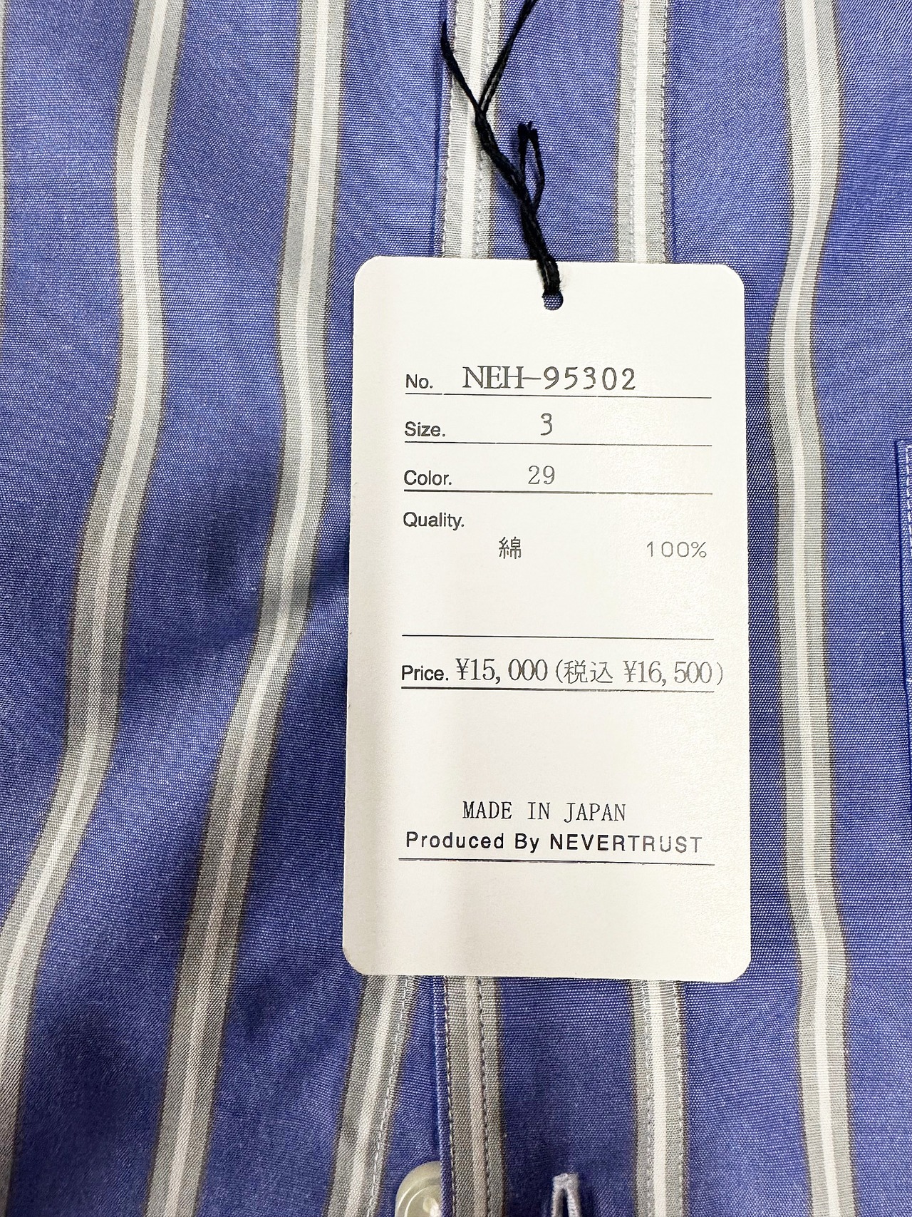 【ネバートラスト】マルチストライプ半袖ボタンダウンシャツ カラー:ブルー