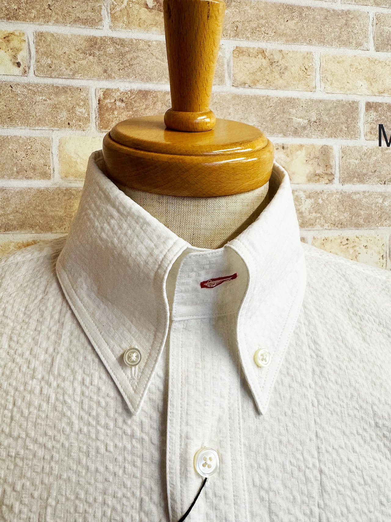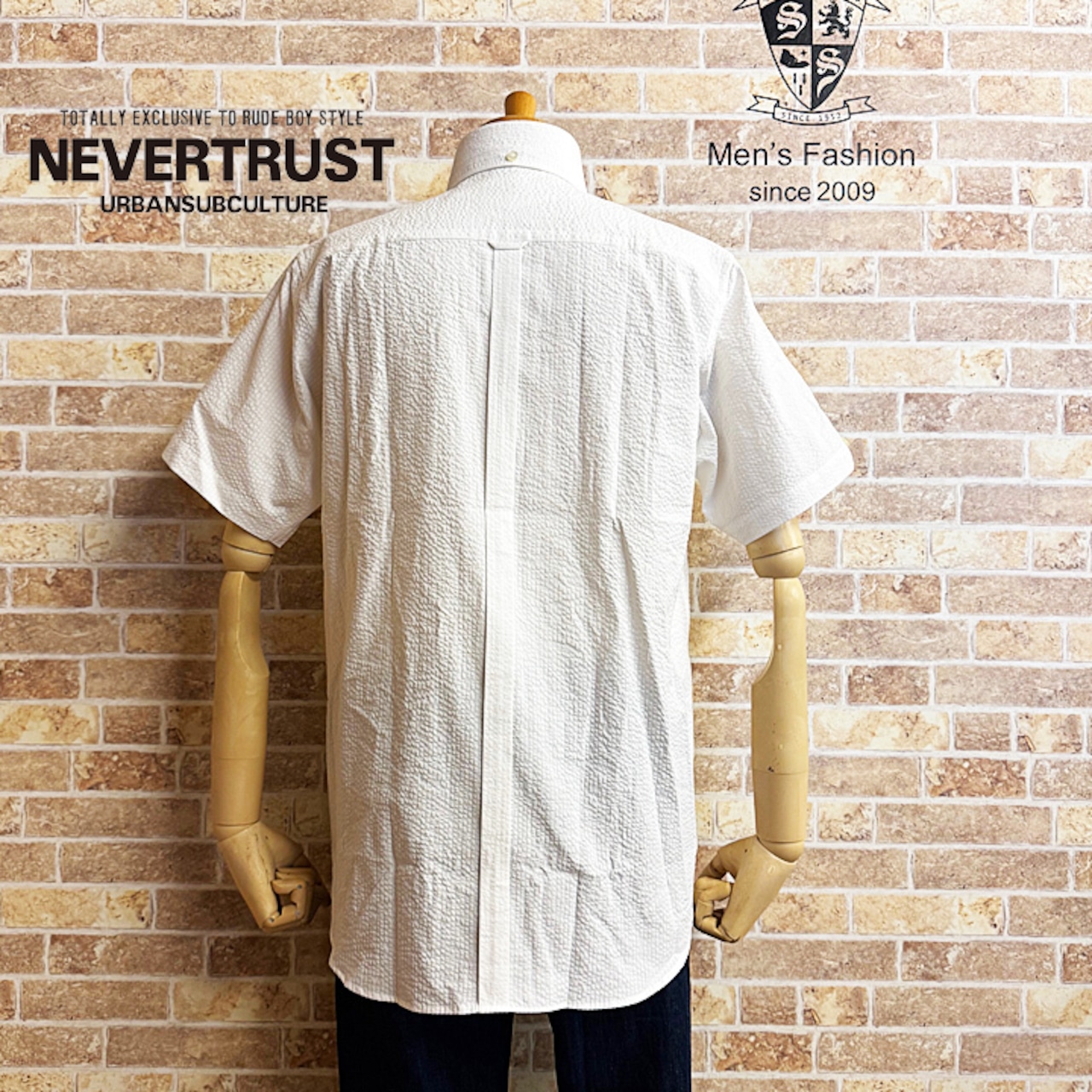 【ネバートラスト】シアサッカー半袖ボタンダウンシャツ カラー:ホワイト