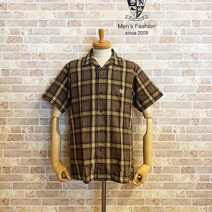 【オーガニックチェック・ワンナップカラー半袖シャツ】