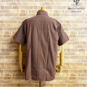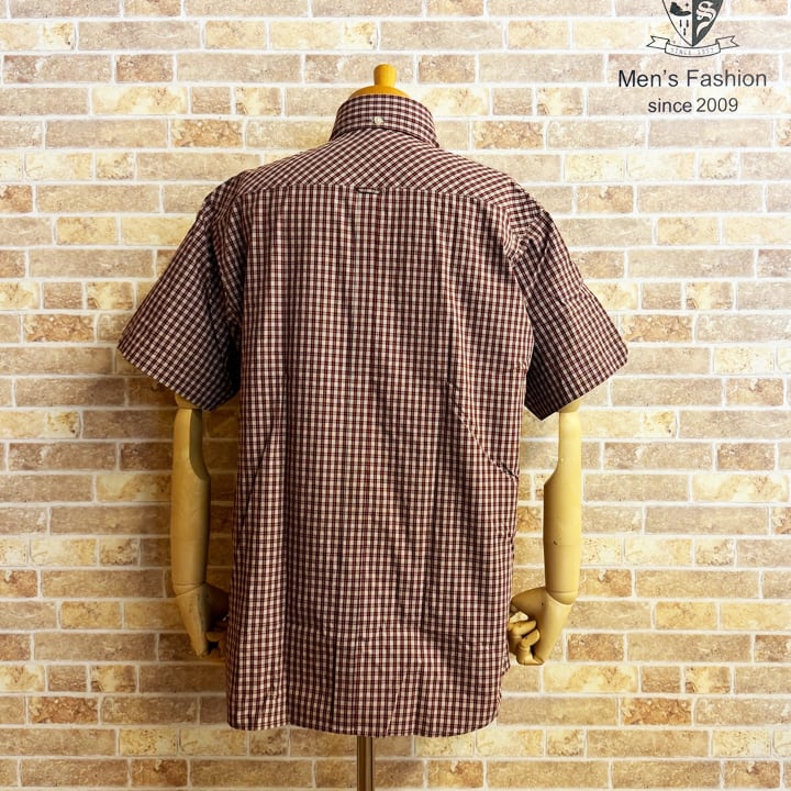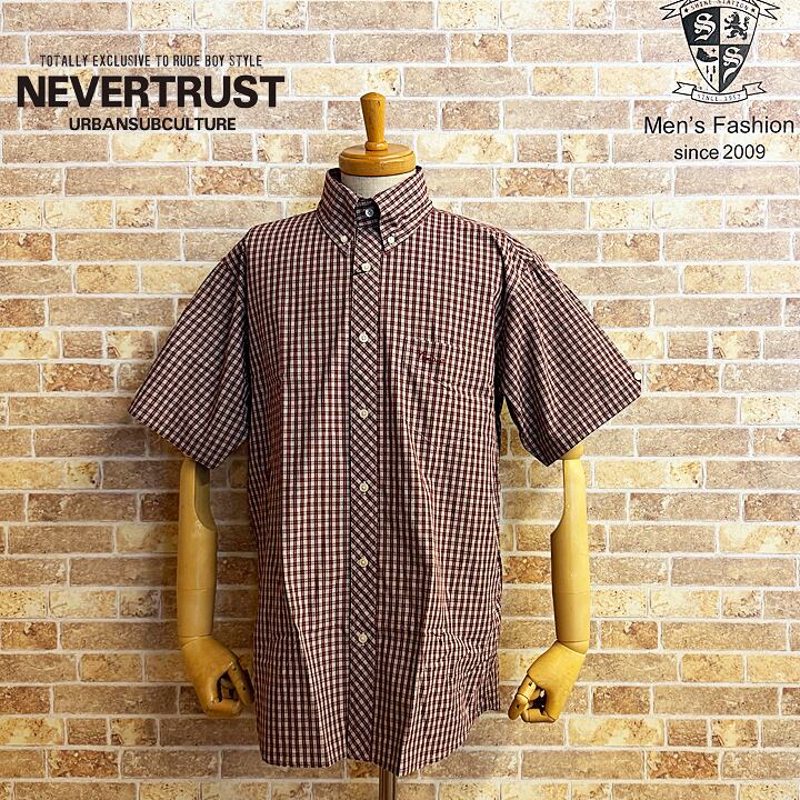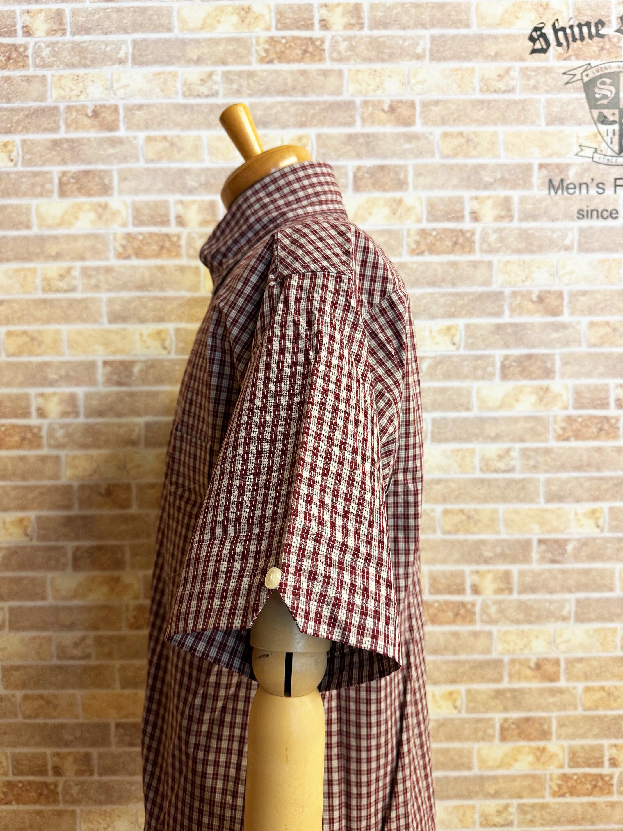 【ネバートラスト】ミニチェック半袖シャツ(ビッグシルエット) カラー:バーガンディ