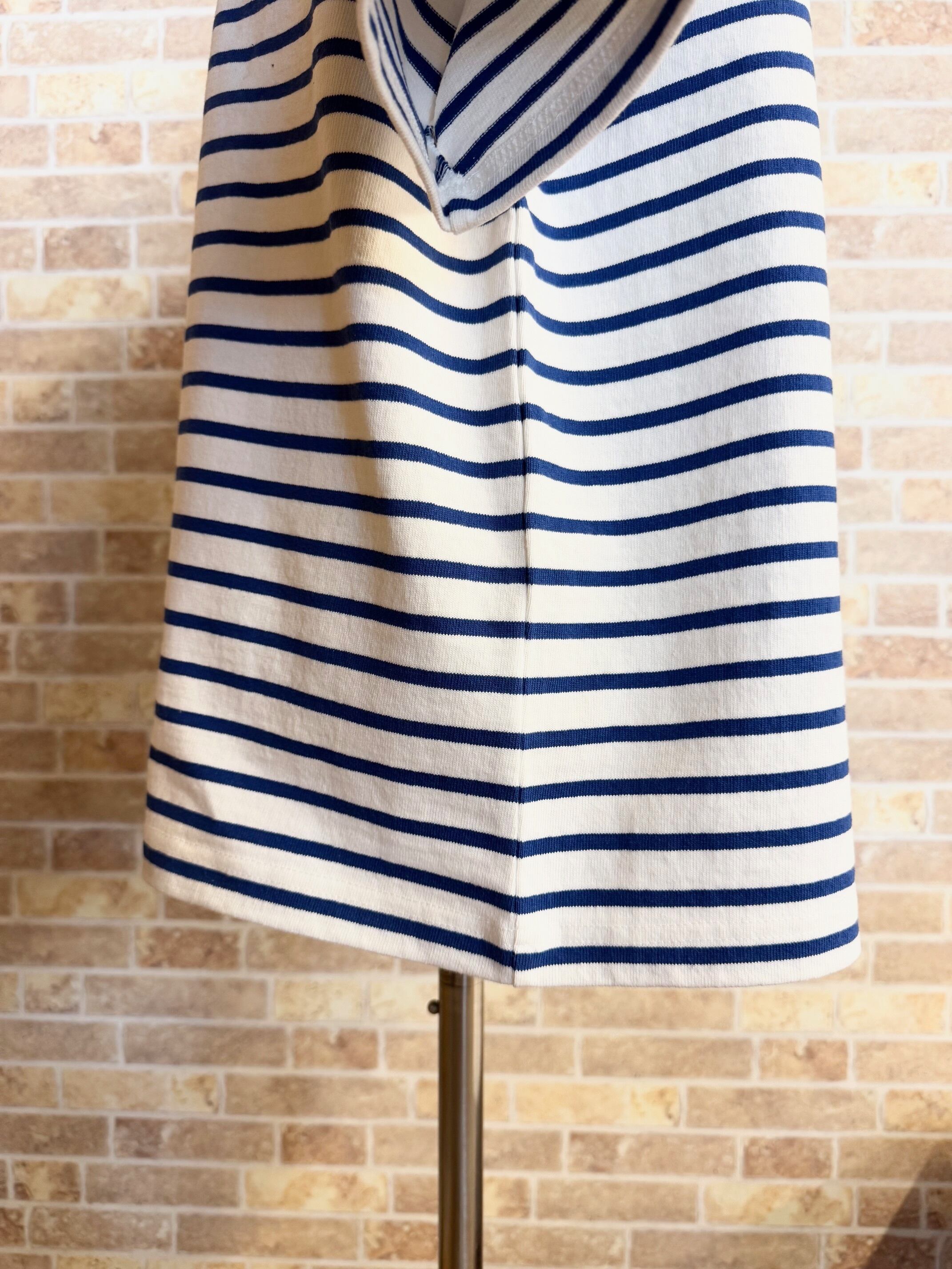 太い糸を使用することで、より存在感のある仕上がりにしたバスクボーダートップスになります。