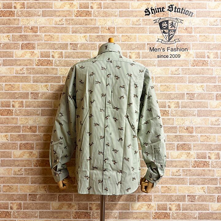 【ストライプ・ホース柄・長袖ボタンダウンシャツ】