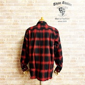 【ネバートラスト】オンブレチェック・カバーオール長袖シャツ カラー:レッド