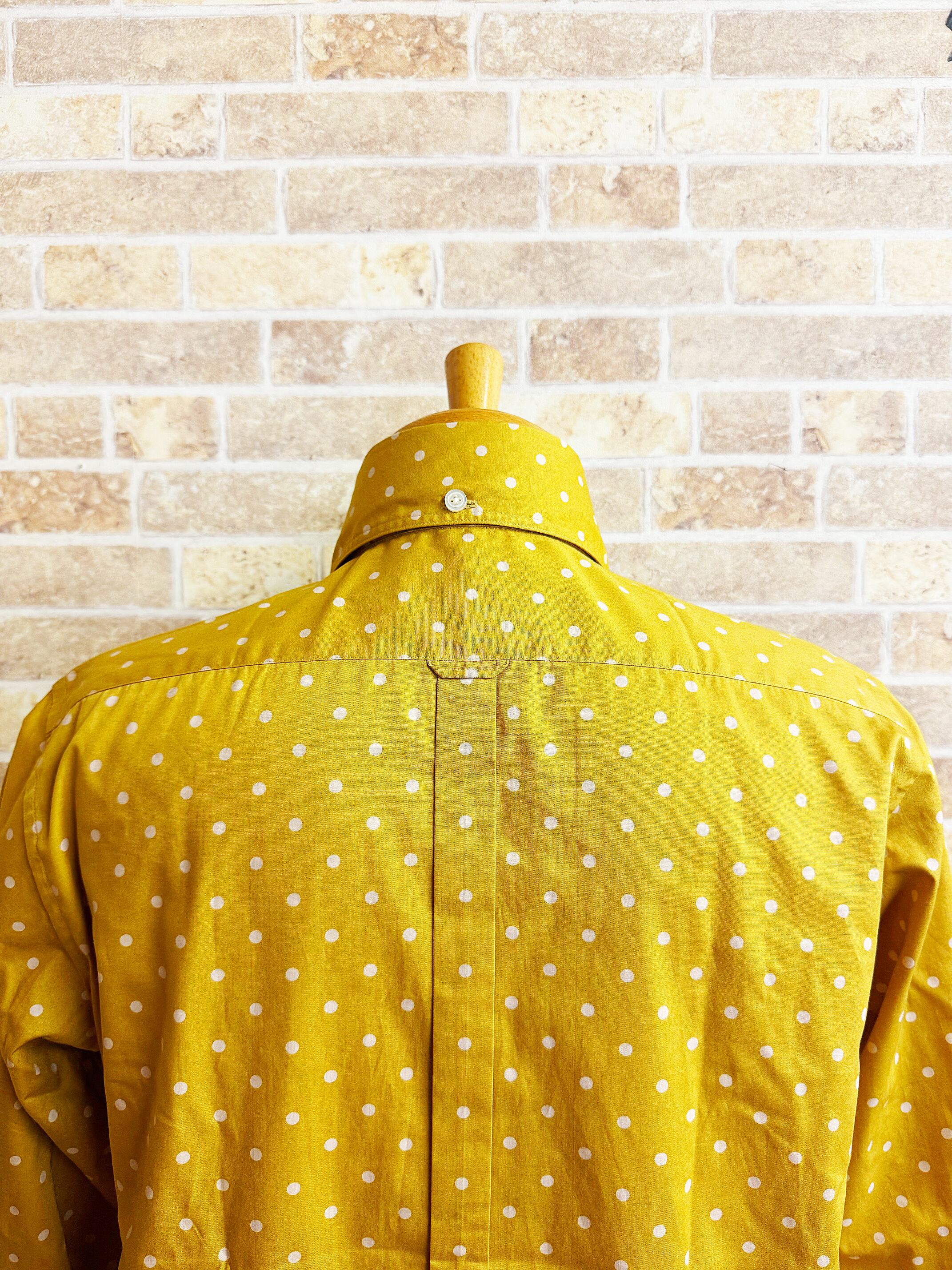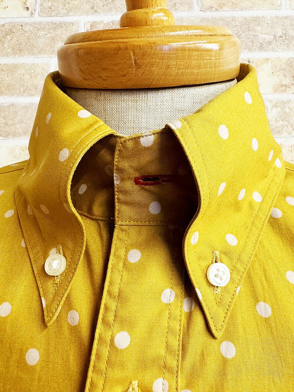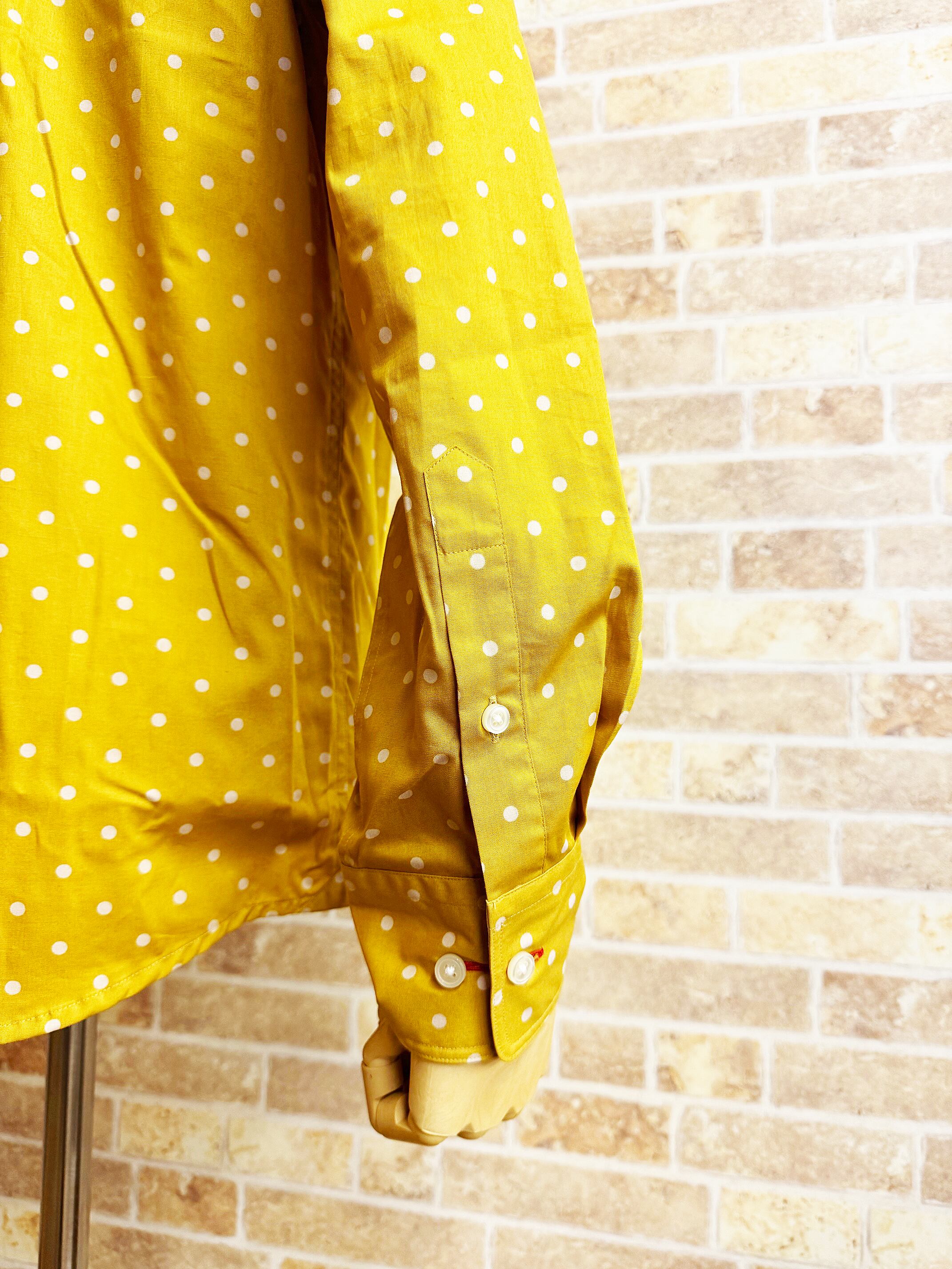 【ネバートラスト】ポルカドットボタンダウン長袖シャツ カラー:マスタード