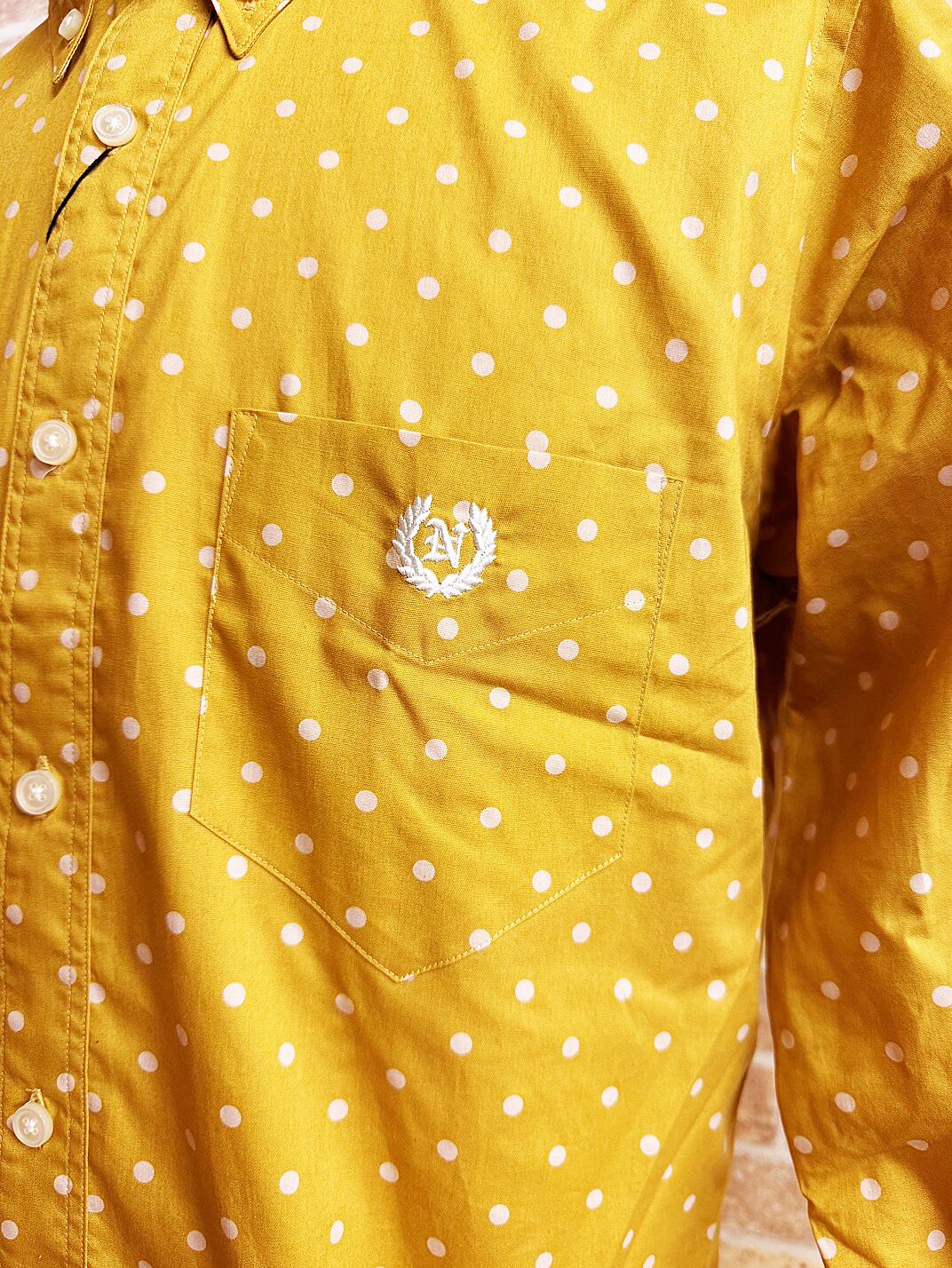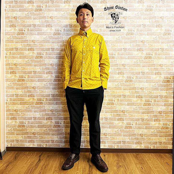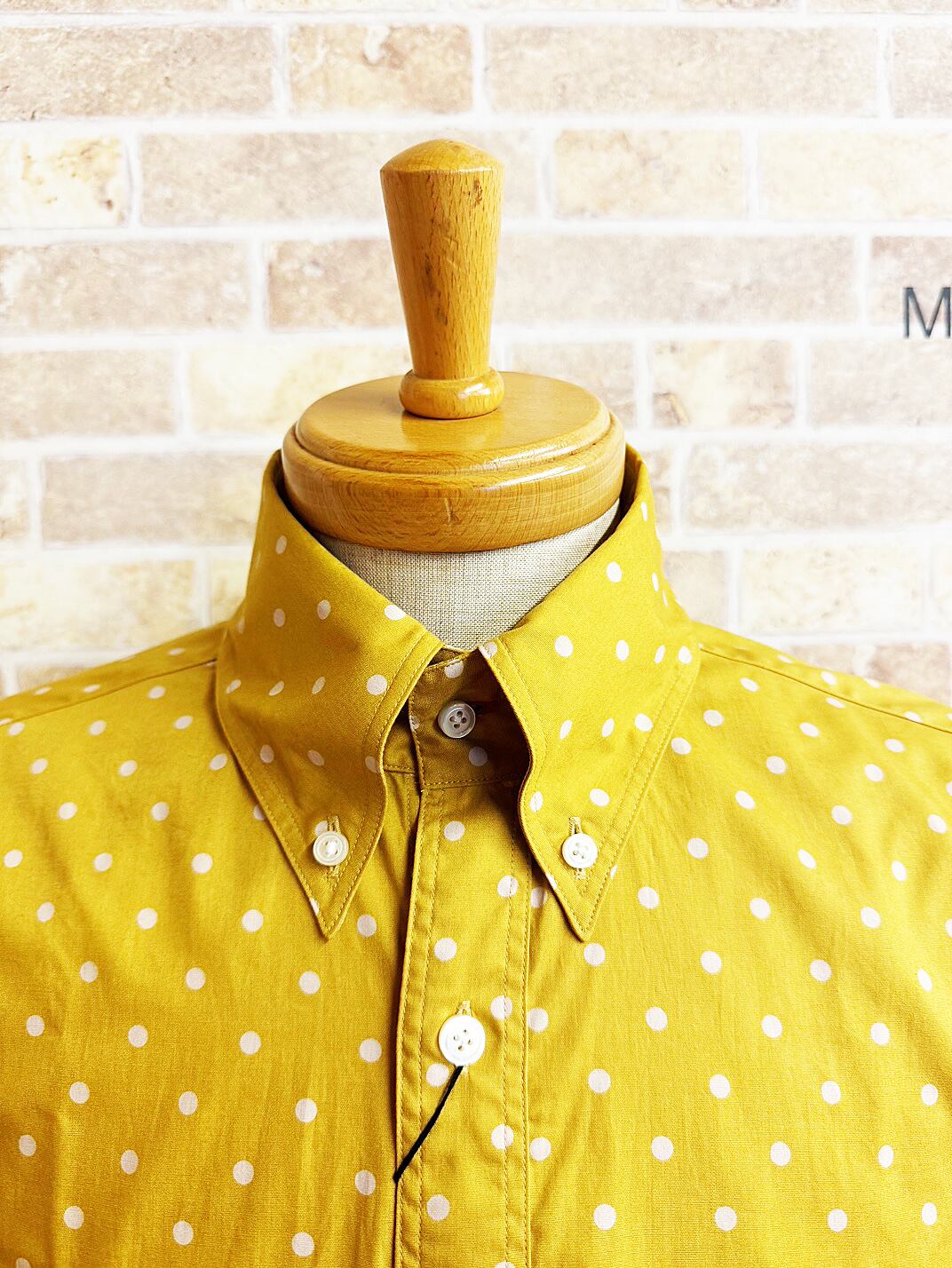 【ネバートラスト】ポルカドットボタンダウン長袖シャツ カラー:マスタード