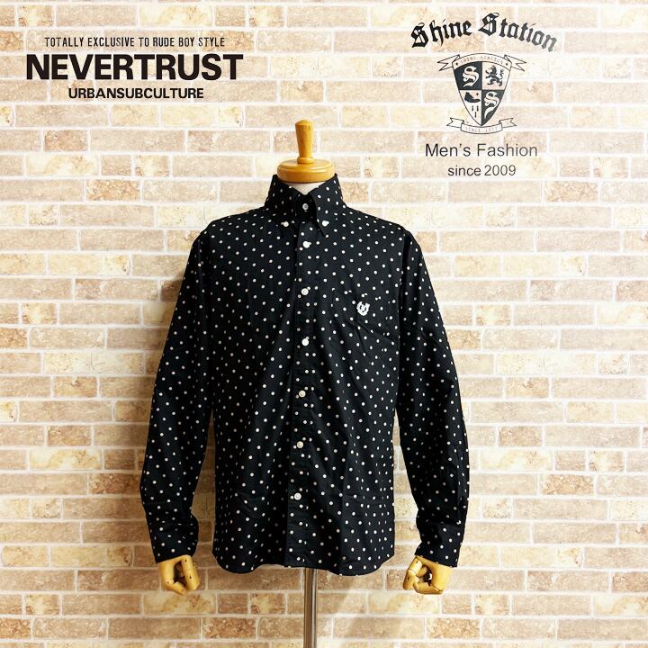 【ネバートラスト】ポルカドットボタンダウン長袖シャツ カラー:ブラック
