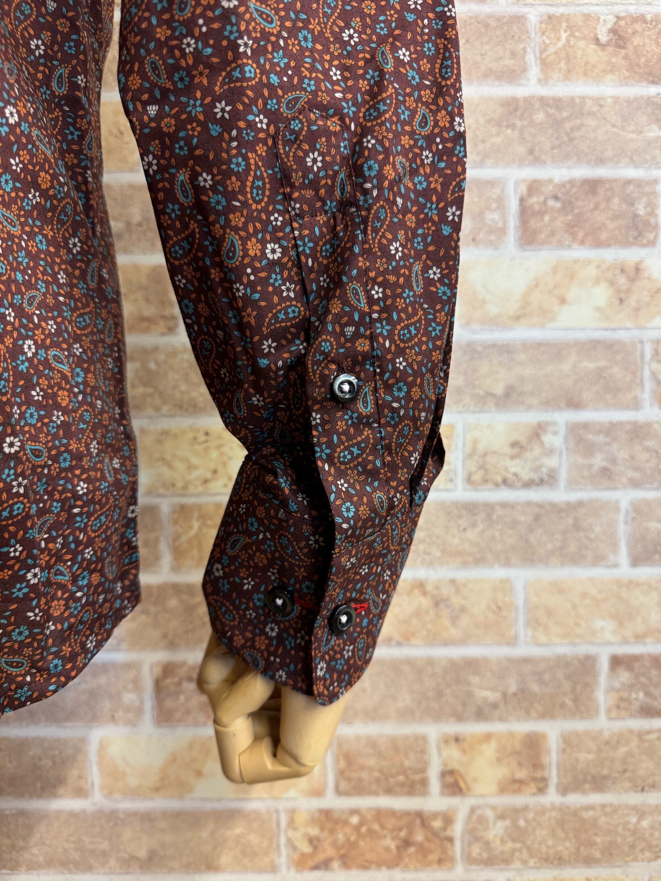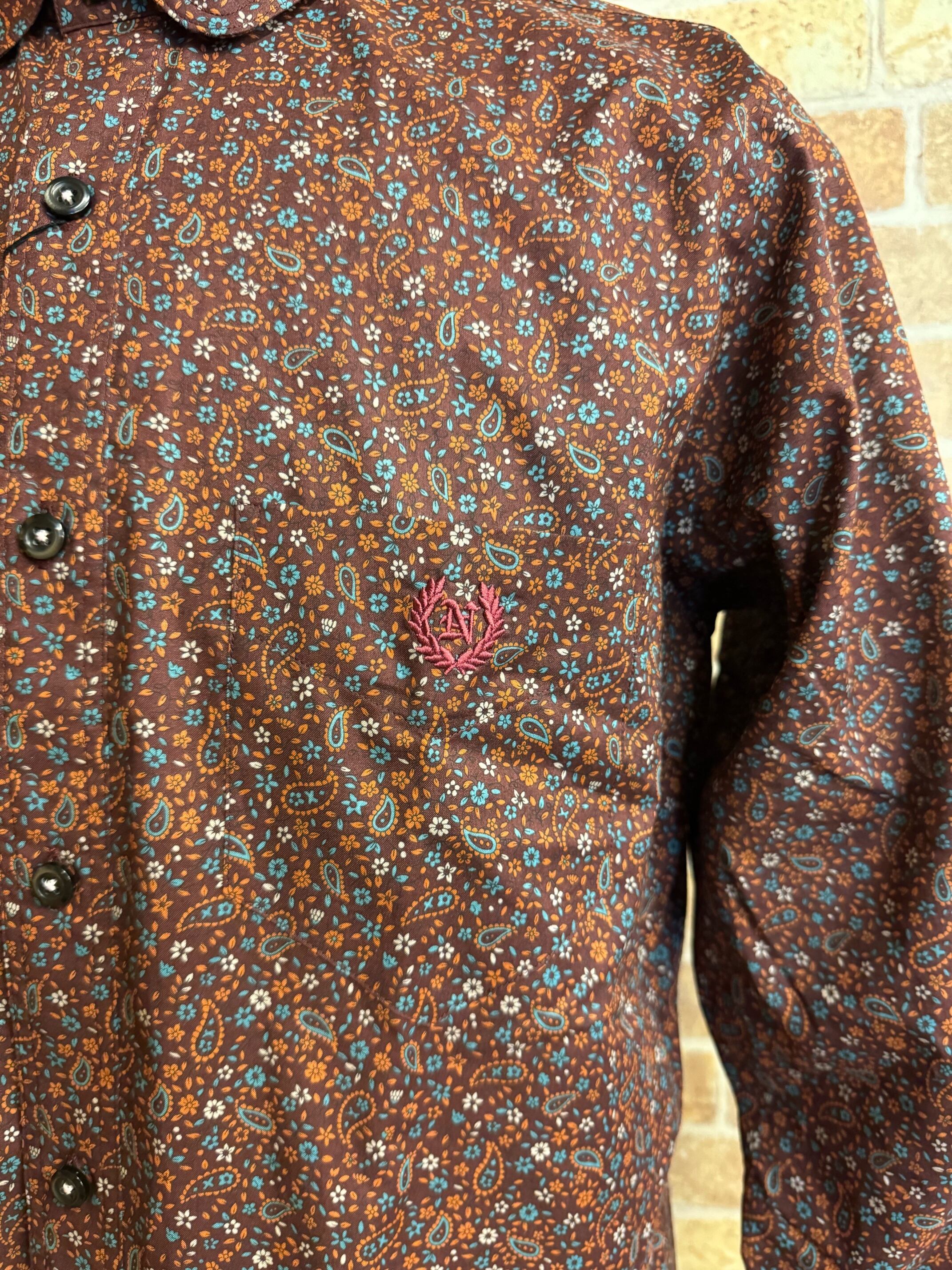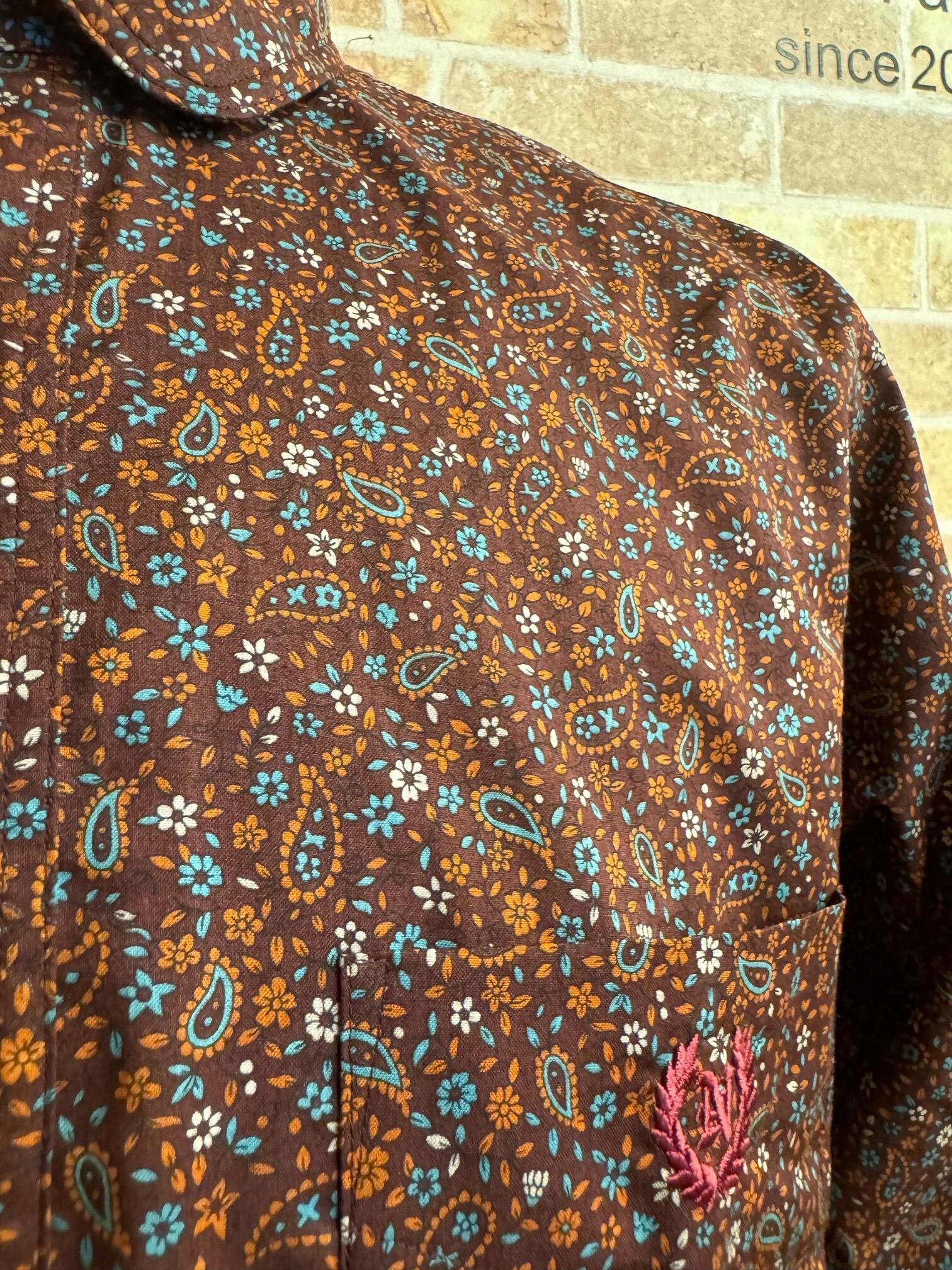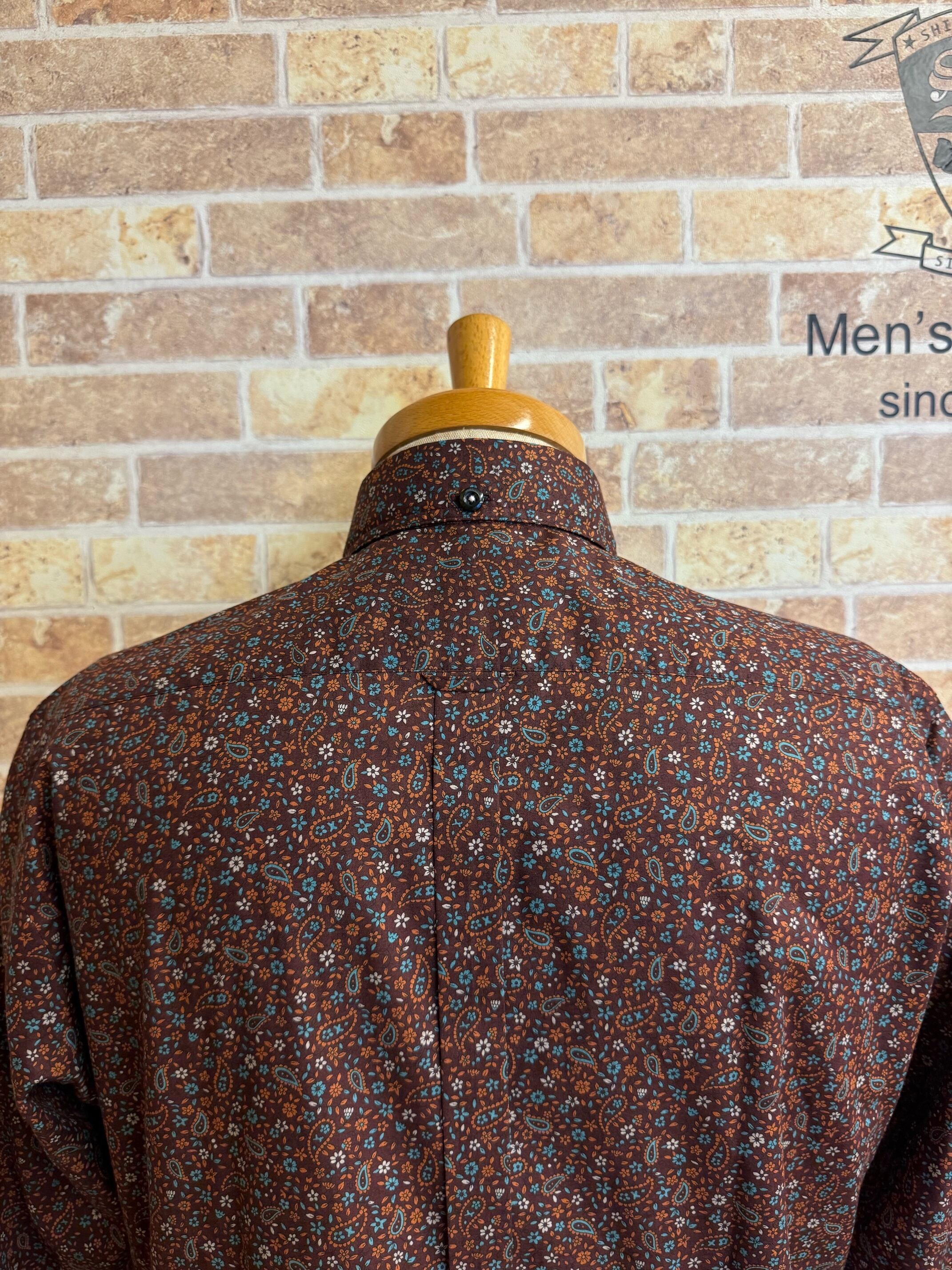 ノスタルジックで愛嬌のあるペイズリー柄が魅力的なショートラウンドカラーの隠しボタンダウンシャツデザインです。