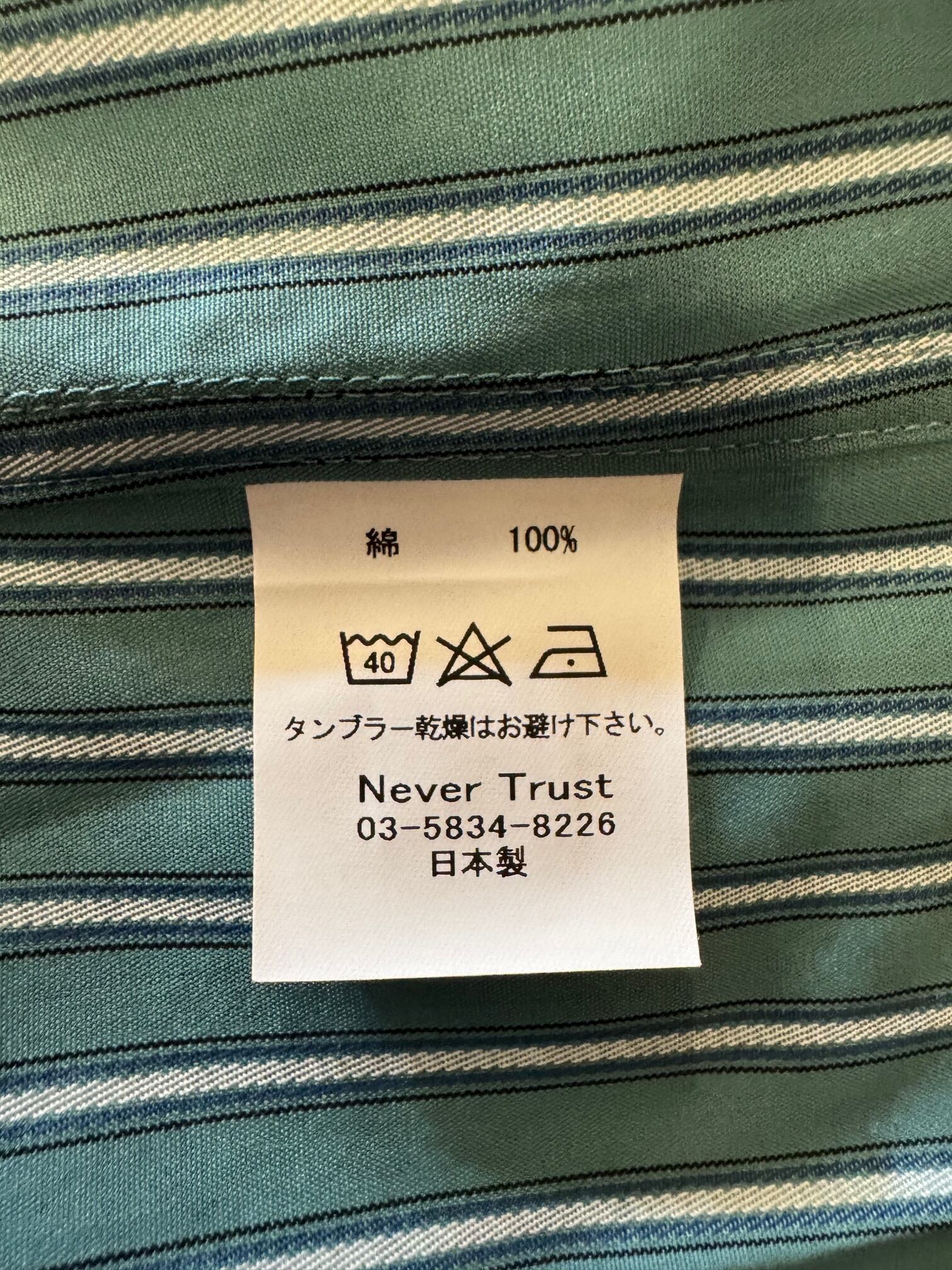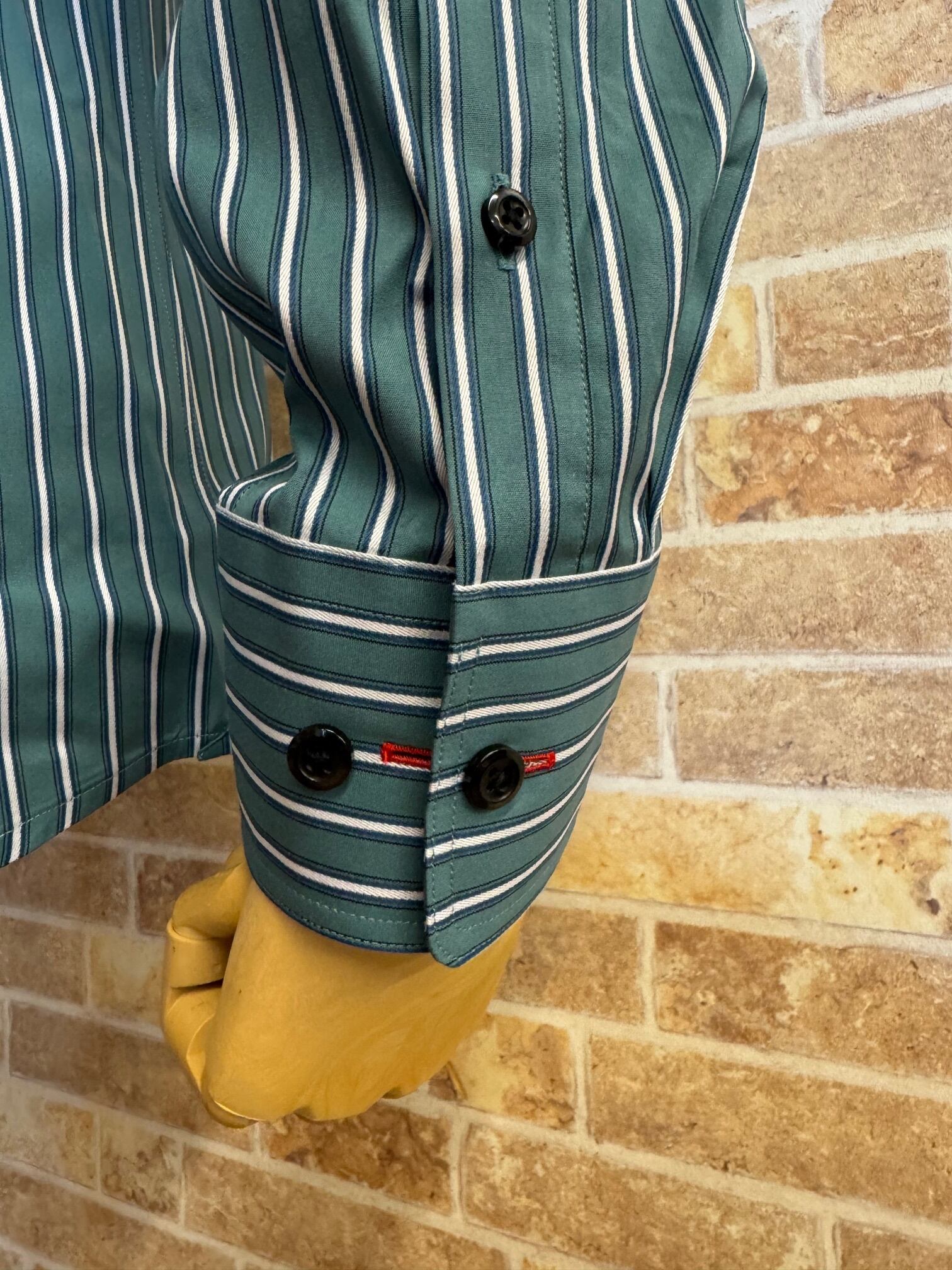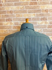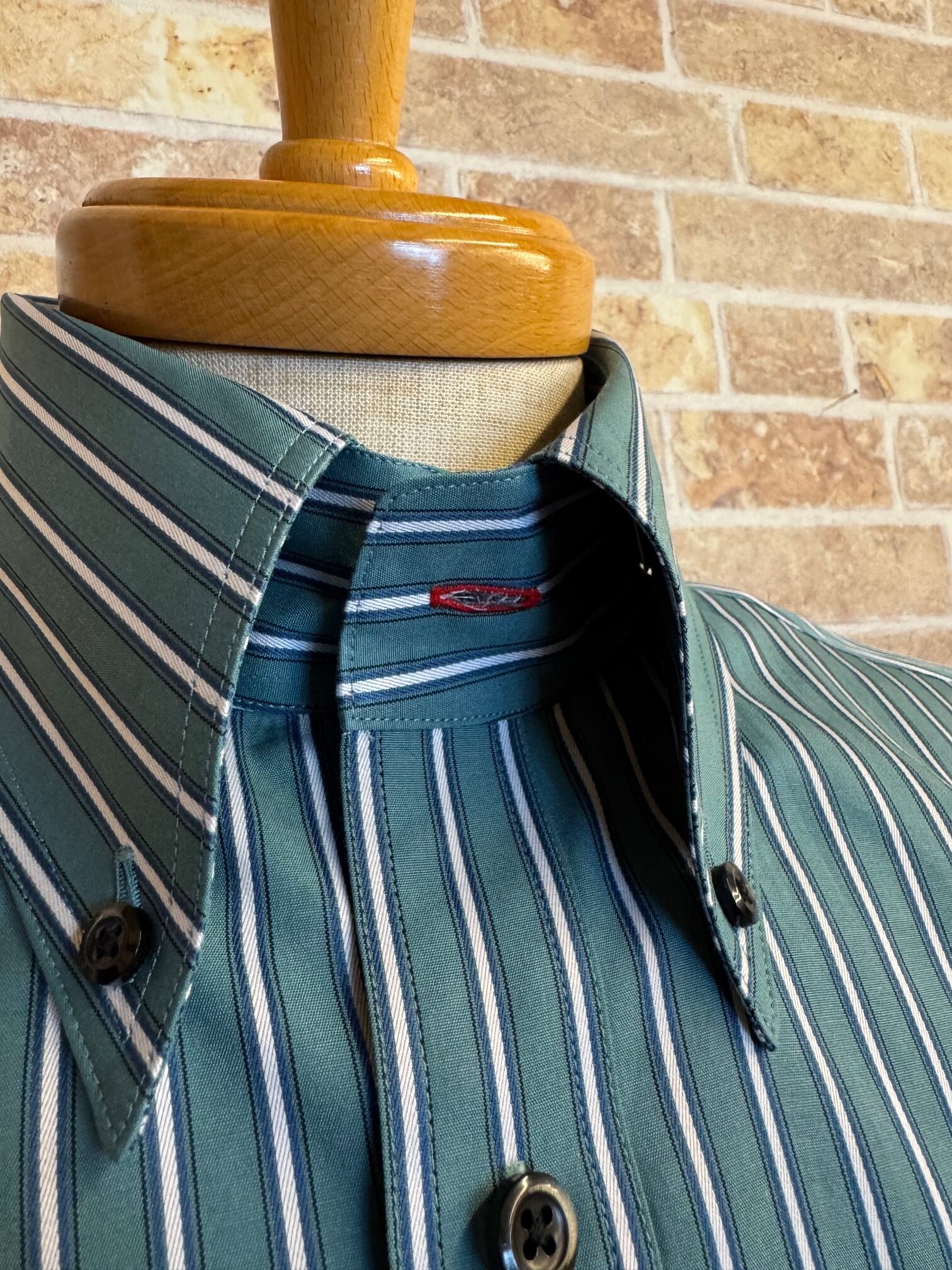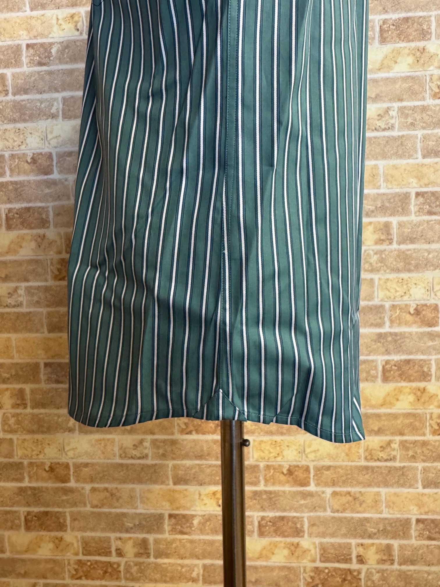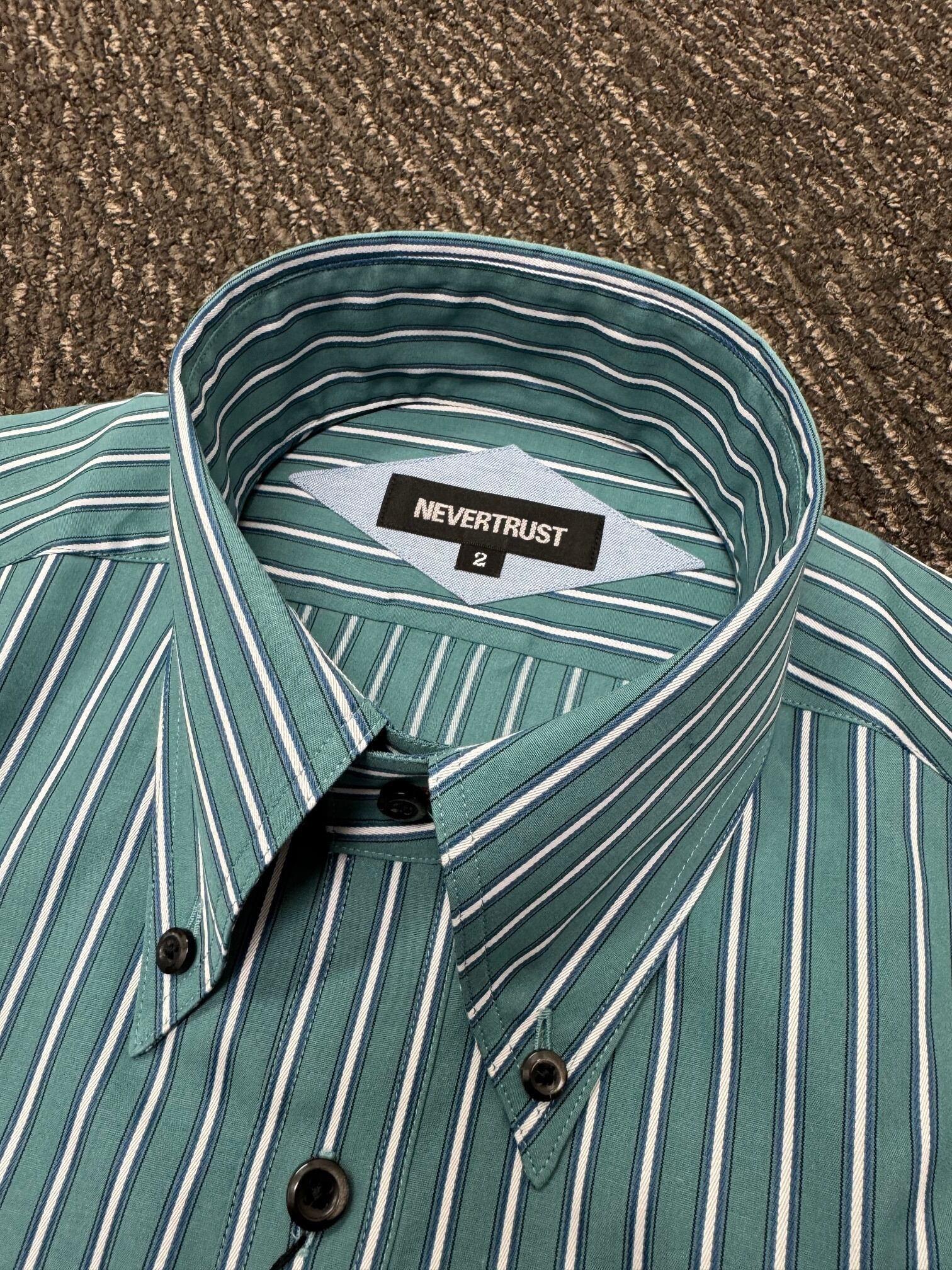 【ネバートラスト】ドビーストライプボタンダウン長袖シャツ カラー:グリーン