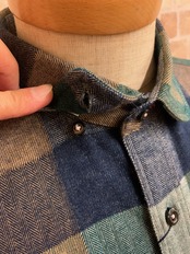 襟はショートラウンドカラーの隠しボタンダウンになっています。