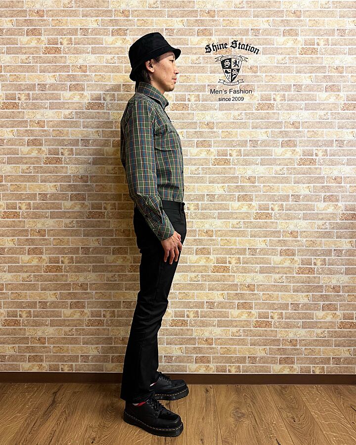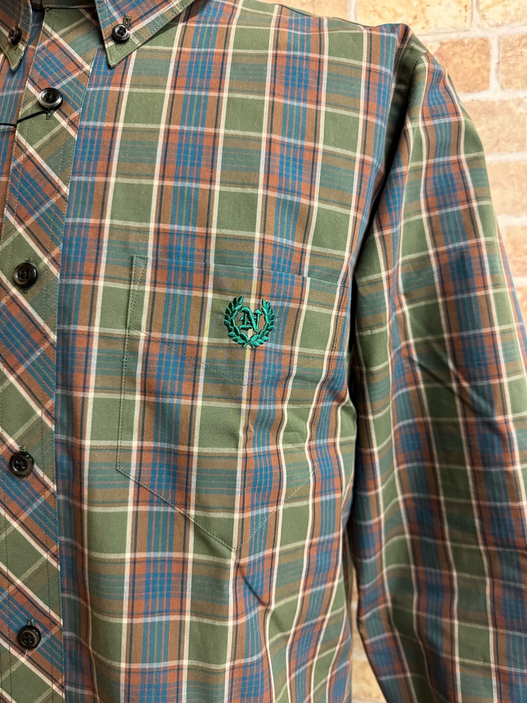 【ネバートラスト】トラッドチェックボタンダウン長袖シャツ カラー:グリーン