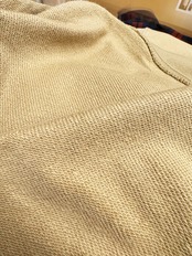 10オンス、裏パイル仕様で肌触りもタオルのように柔らかく、生地の厚みのあまりないので、重ね着してもゴワツキません。