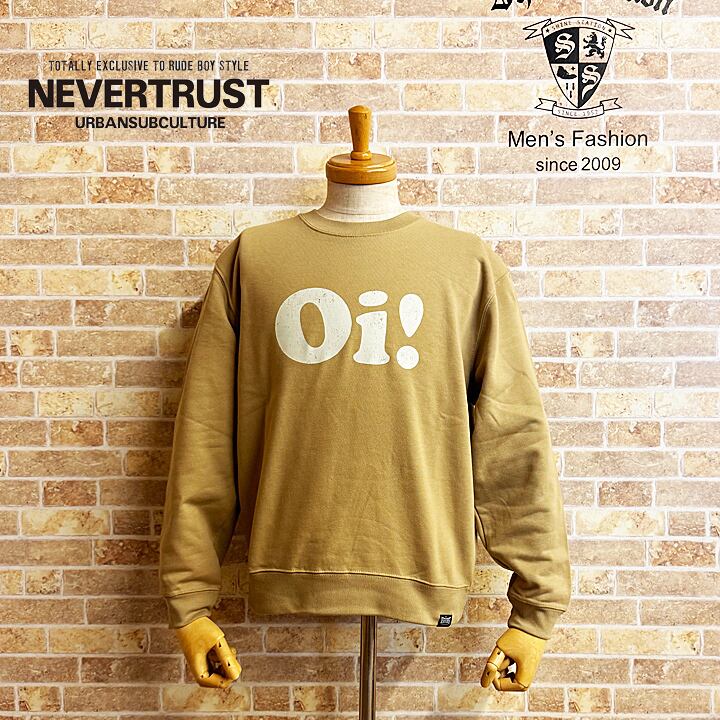 【ネバートラスト】Oi!クルーネックスウェット カラー:サンド