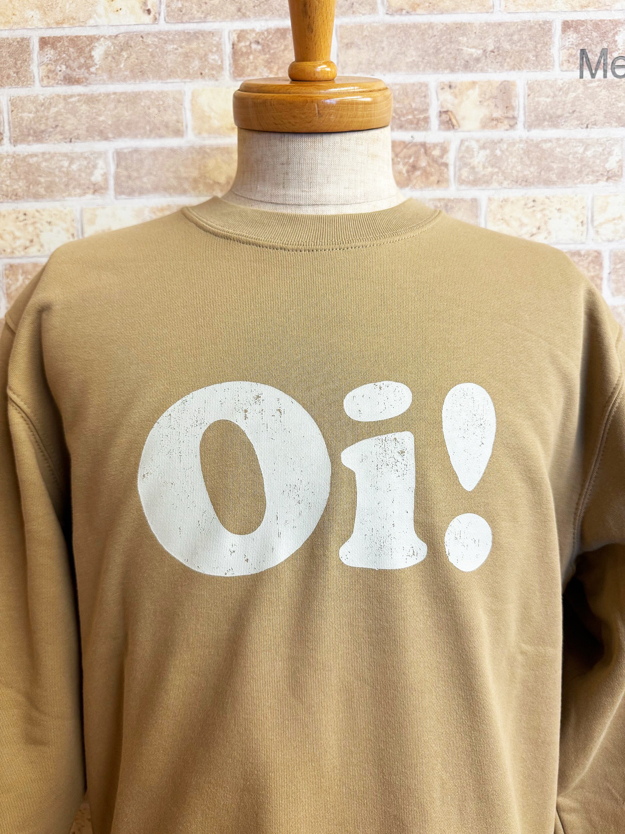 シンプルにフロントに「Oi!」のロゴプリントのクルーネックスウェット。
