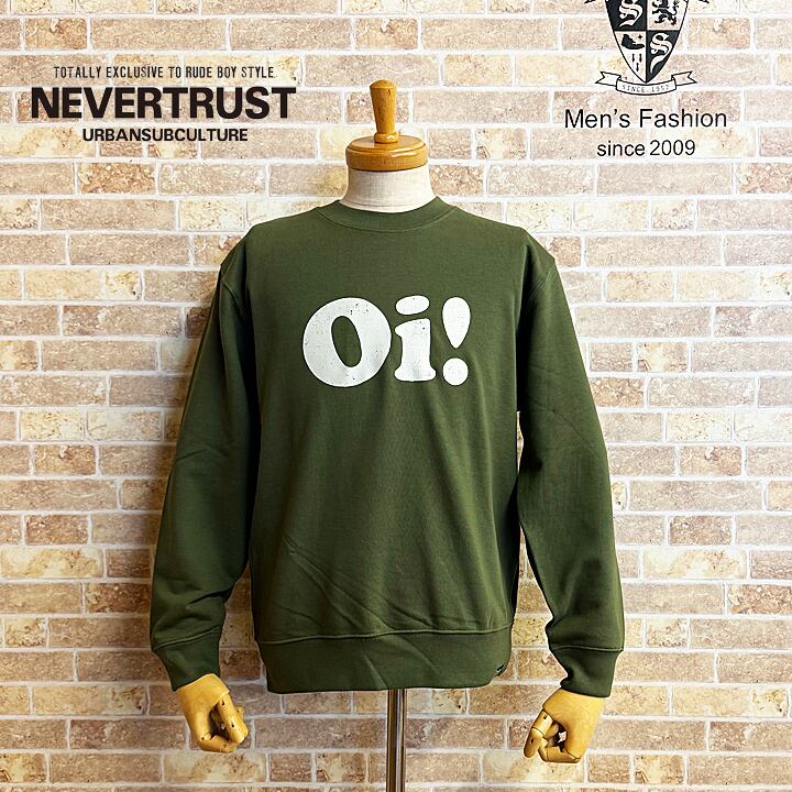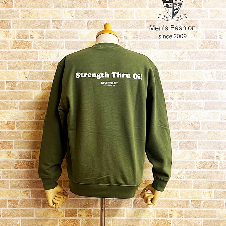 【ネバートラスト】Oi!クルーネックスウェット カラー:オリーブ