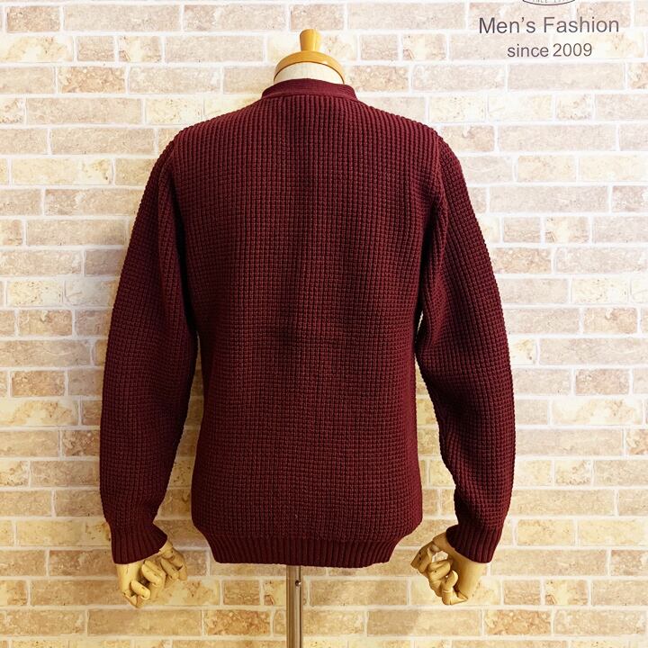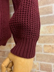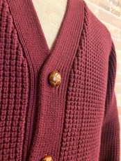 【ネバートラスト】ワッフルニットカーディガン カラー:バーガンディ