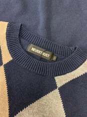 【ネバートラスト】ダイヤ柄セーター カラー:ネイビー