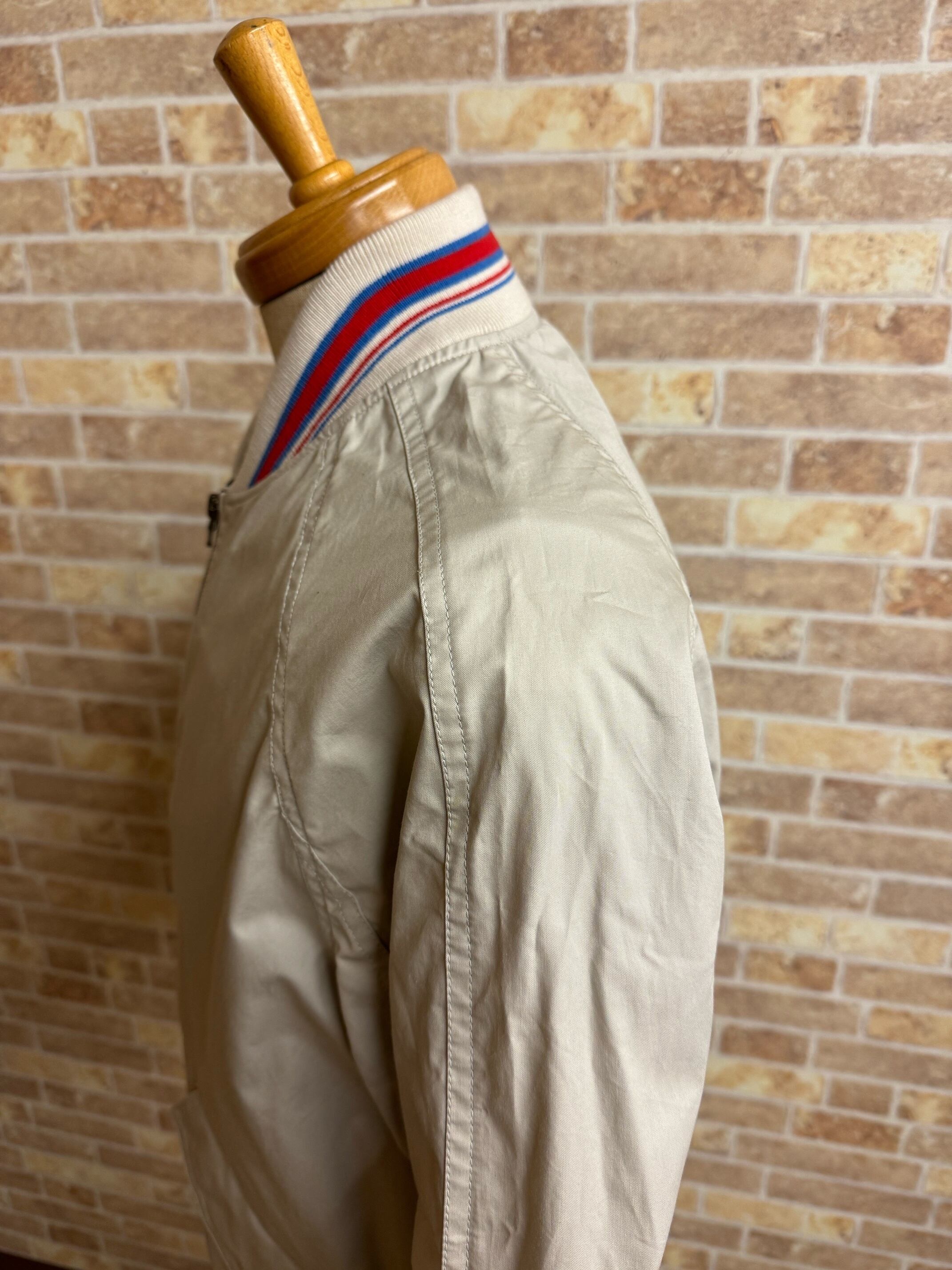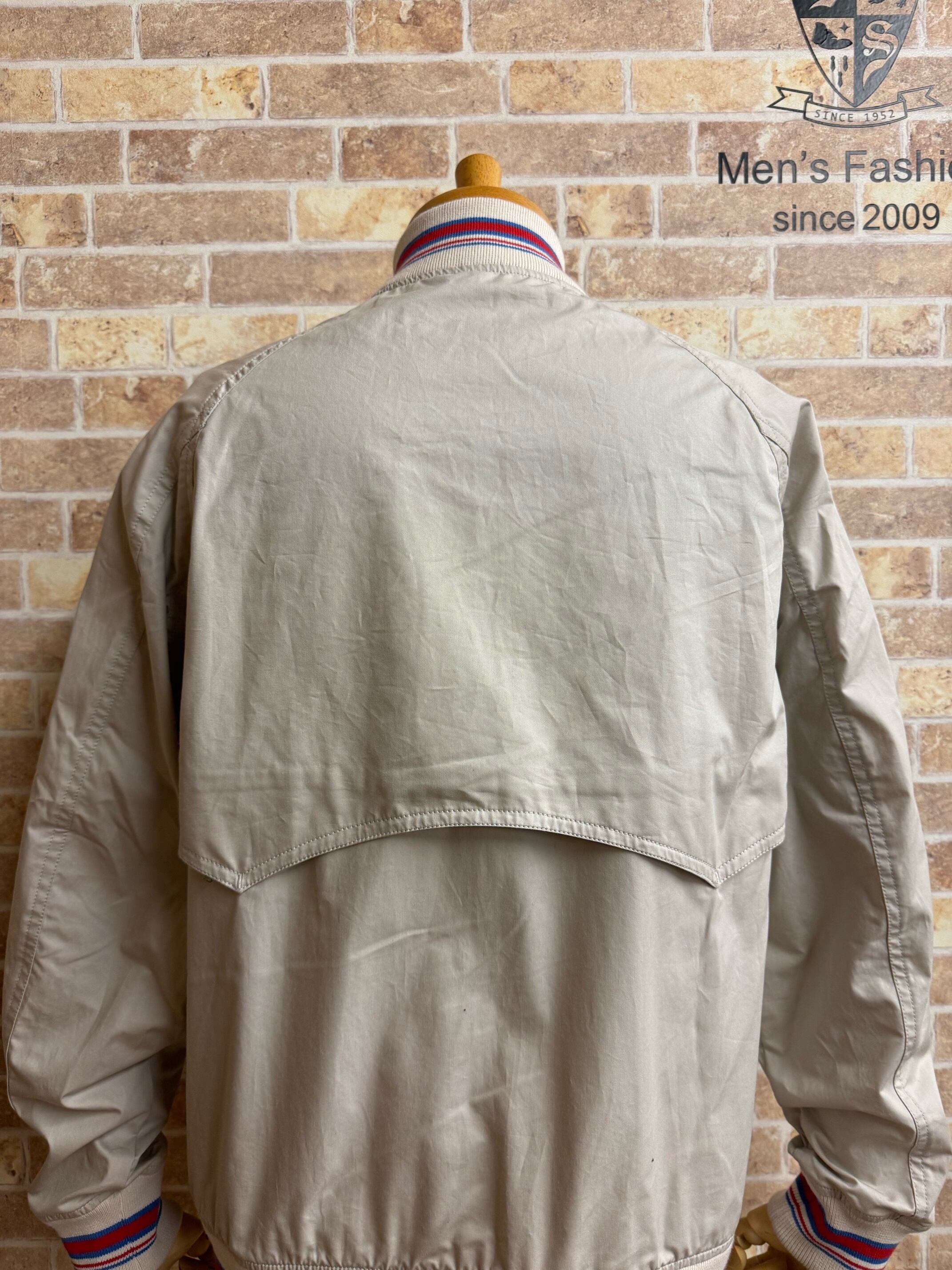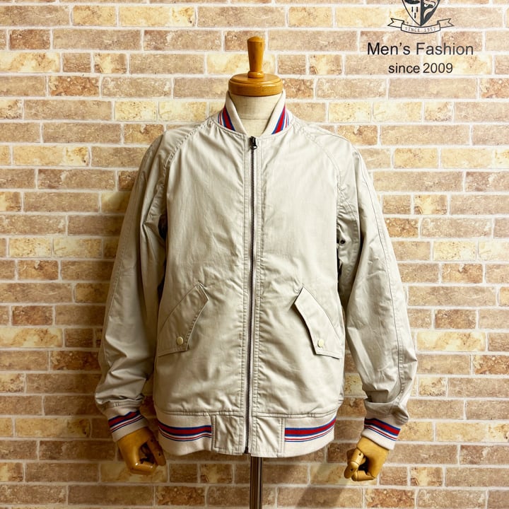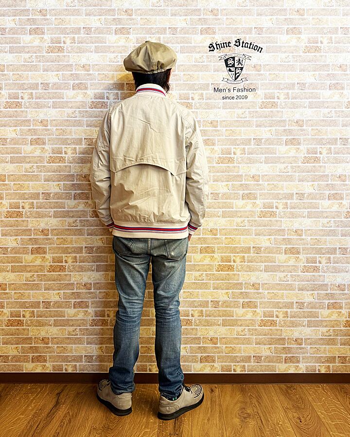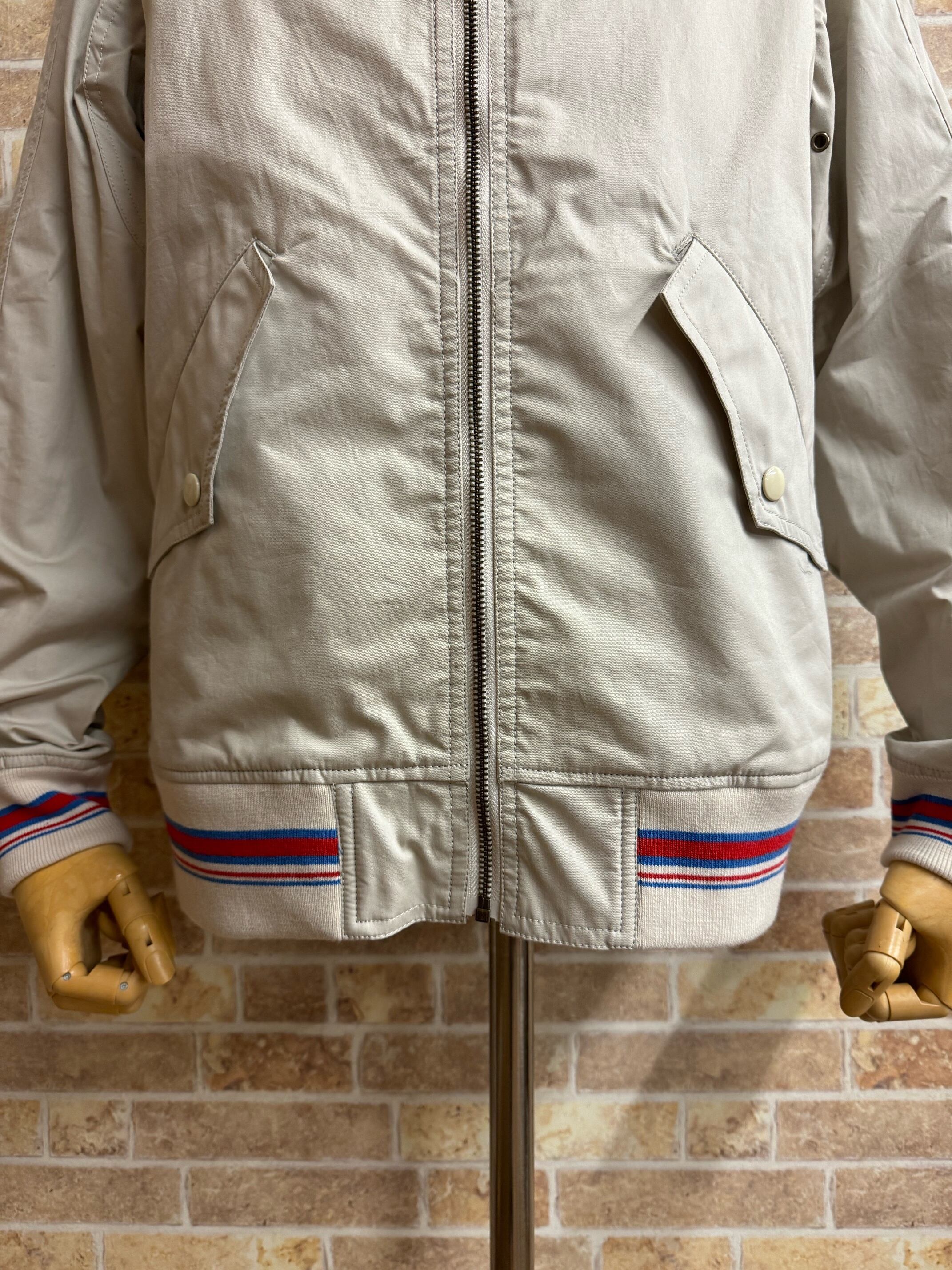 衿・裾・袖口に付けられたポップなストライプが入ったリブが特長の春らしい風合いの高密度のコットンダンプを使用したモッズファッション特有のモンキージャケットです。