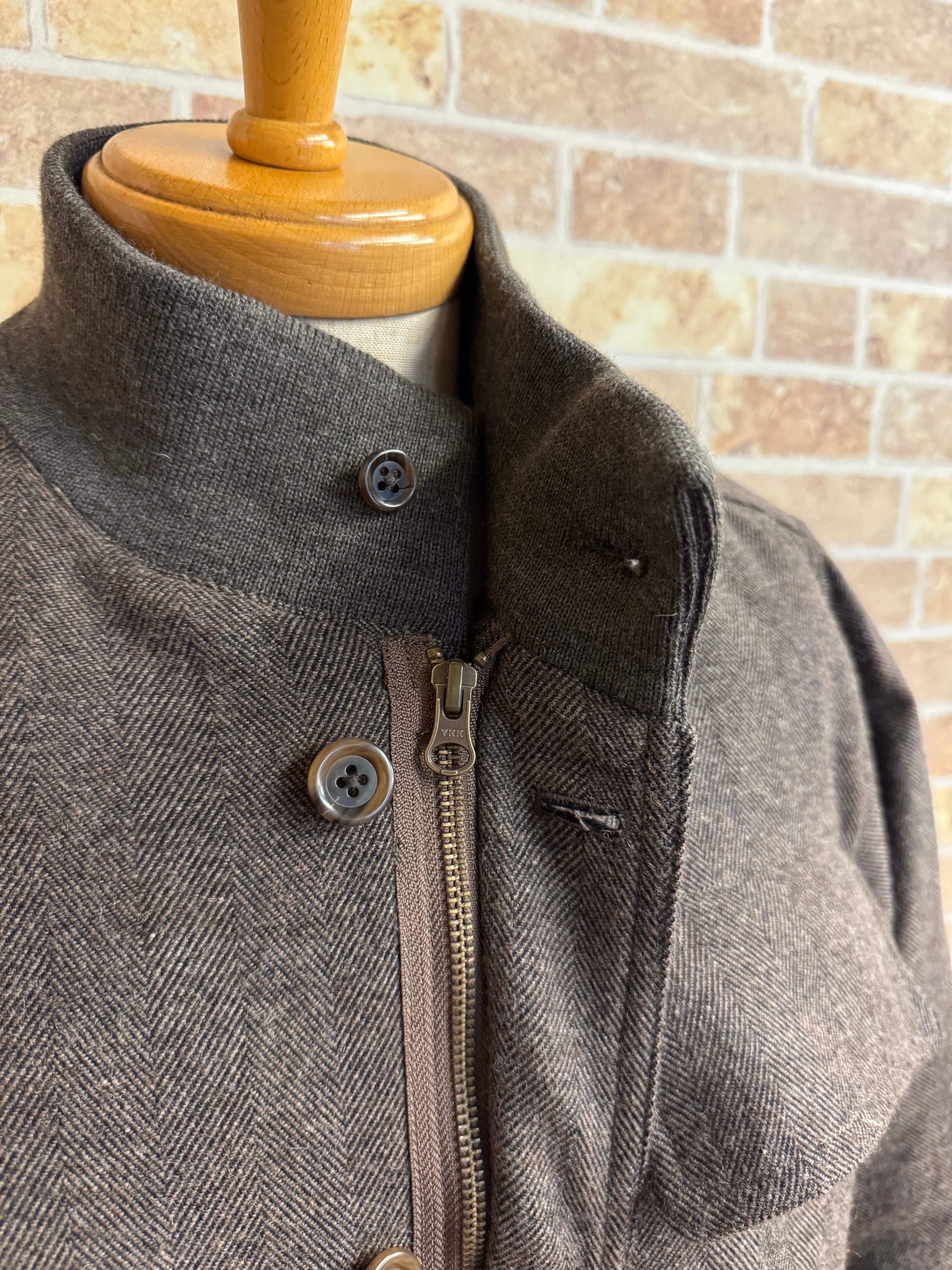 表地は暖かみのあるしっかりとした質感のトラディショナルなウールヘリンボーンを使用しています。