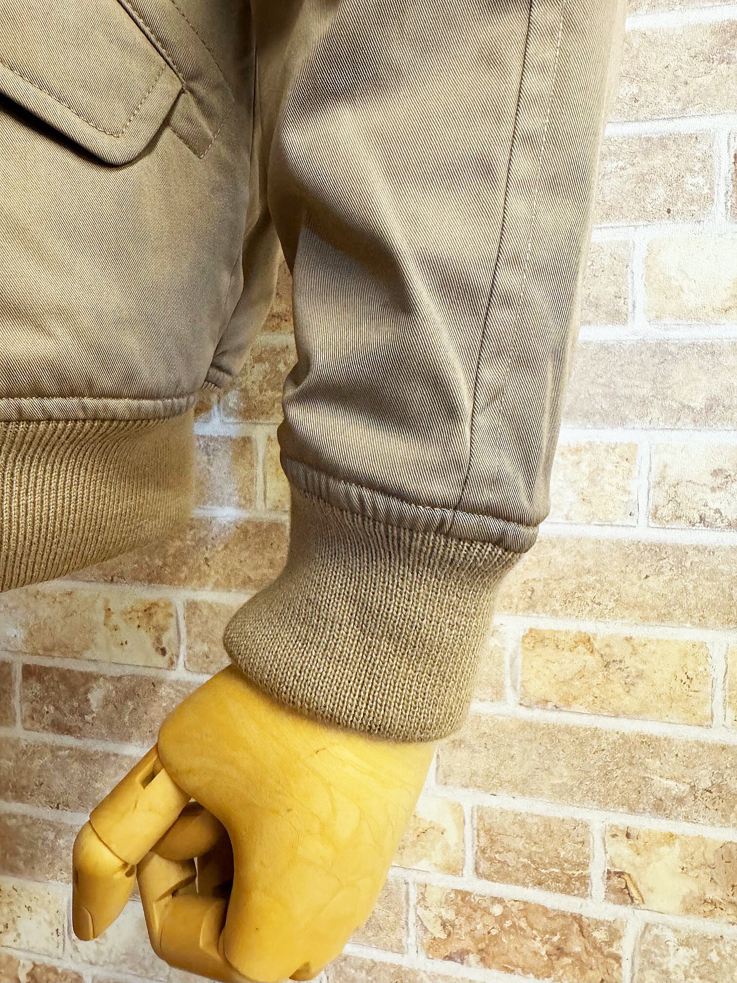 フロントは上下開閉式のダブルファスナー、ラグランスリーヴ、アンブレラヨーク、衿の後ろのハンガーループなど大人の印象を出してくれます。
