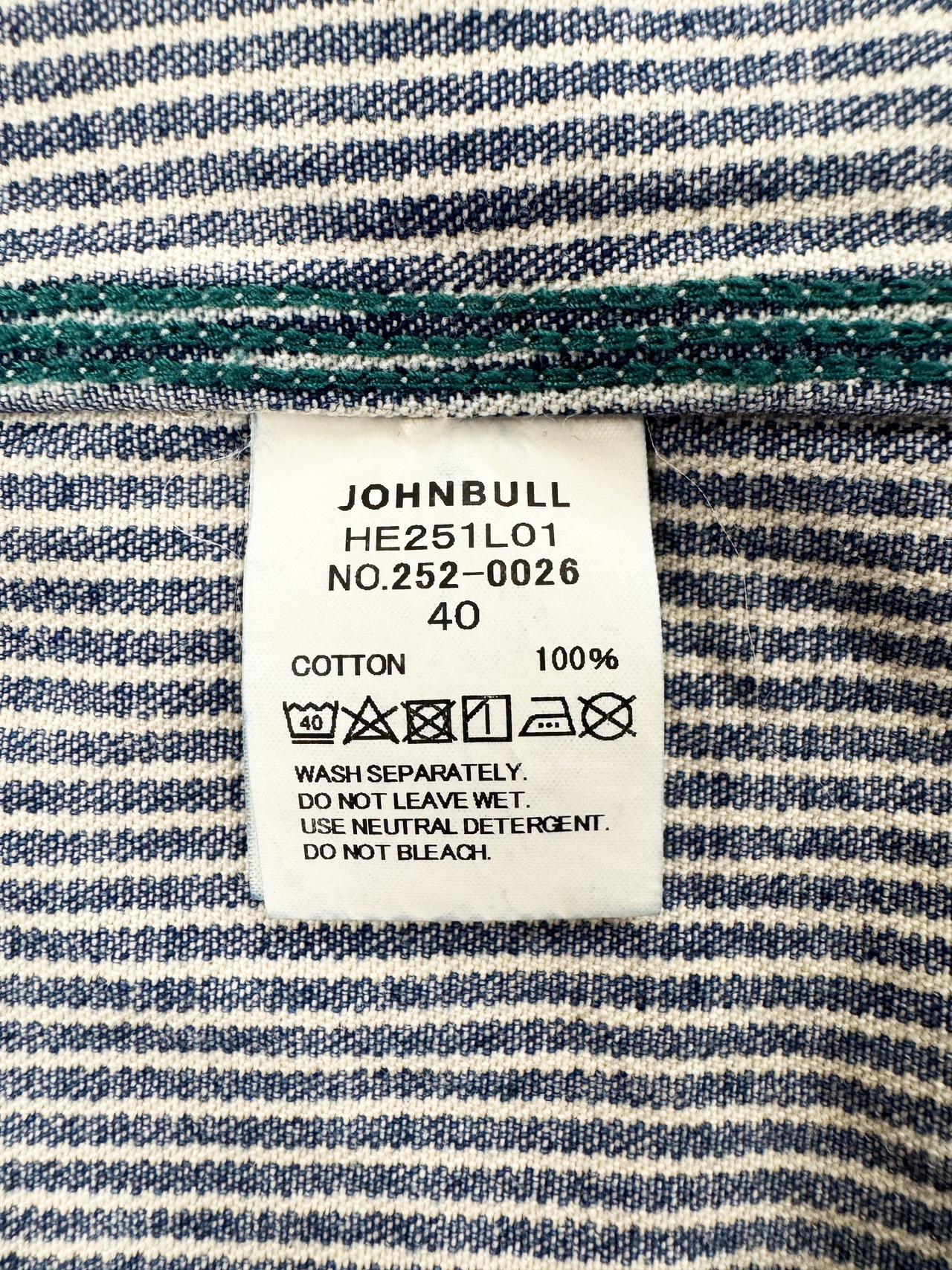 ステッチ裏、カン止めには、グリーンの糸を使用しており、当時見えない箇所には工場の残糸を使用していたようなストーリーをイメージ。