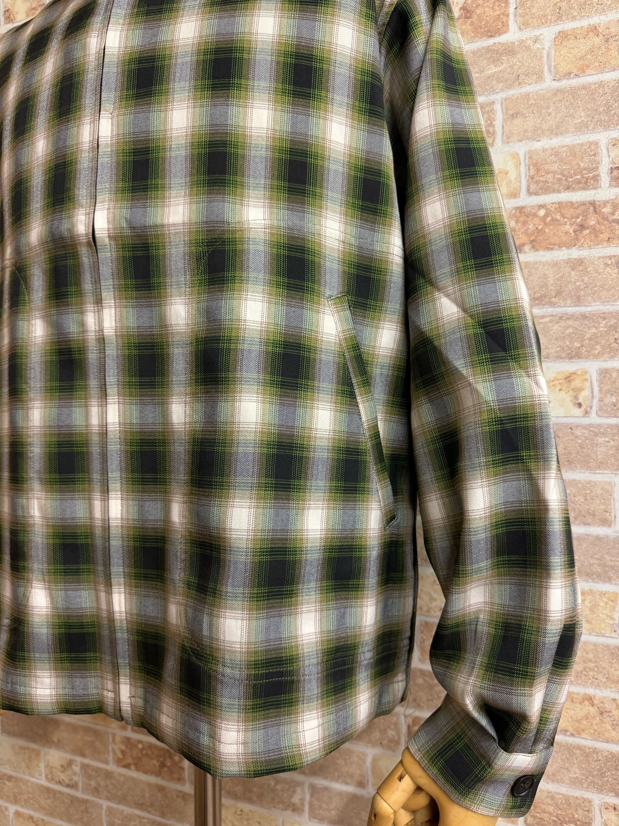 【ジョンブル】オンブレチェックジップシャツブルゾン カラー:グリーン