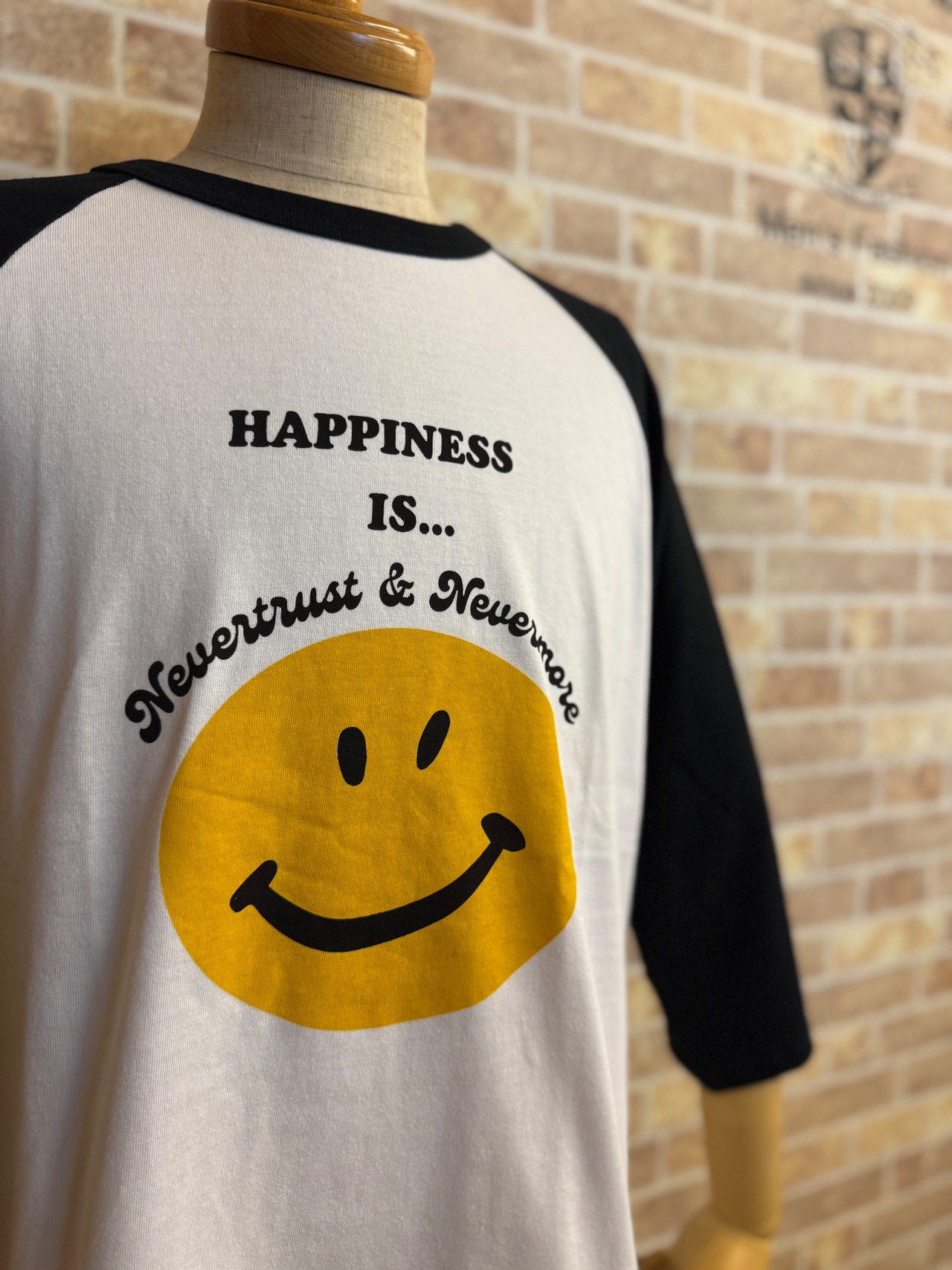 【ネバートラスト】HAPPINESSラグラン7分袖Tシャツ カラー:ホワイト/ブラック