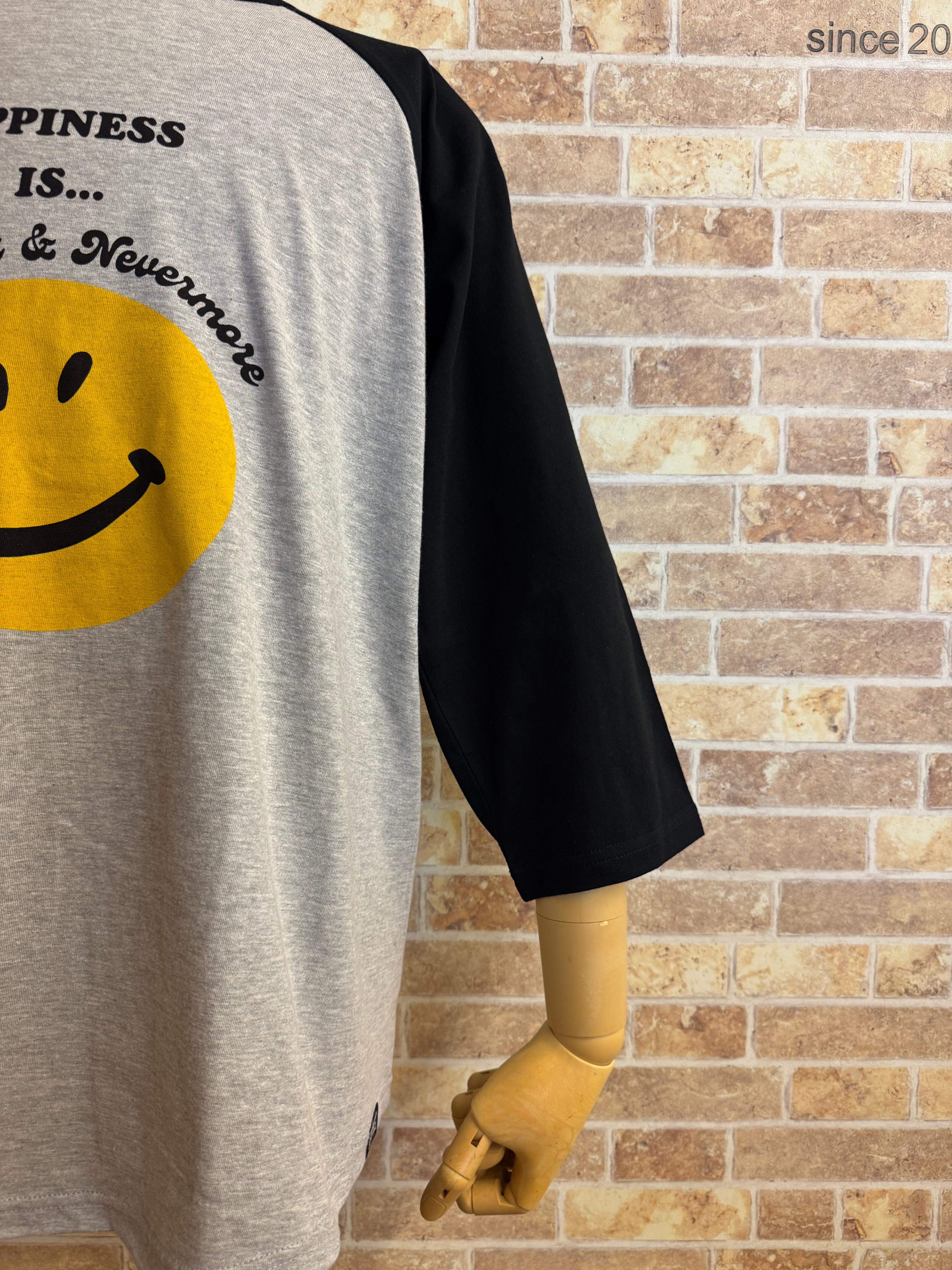 インパクト抜群のヴィンテージ風スマイルのプリントが可愛い(kawaii)ラグラン・スリーヴ七分袖Tシャツです。