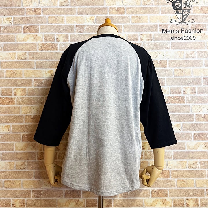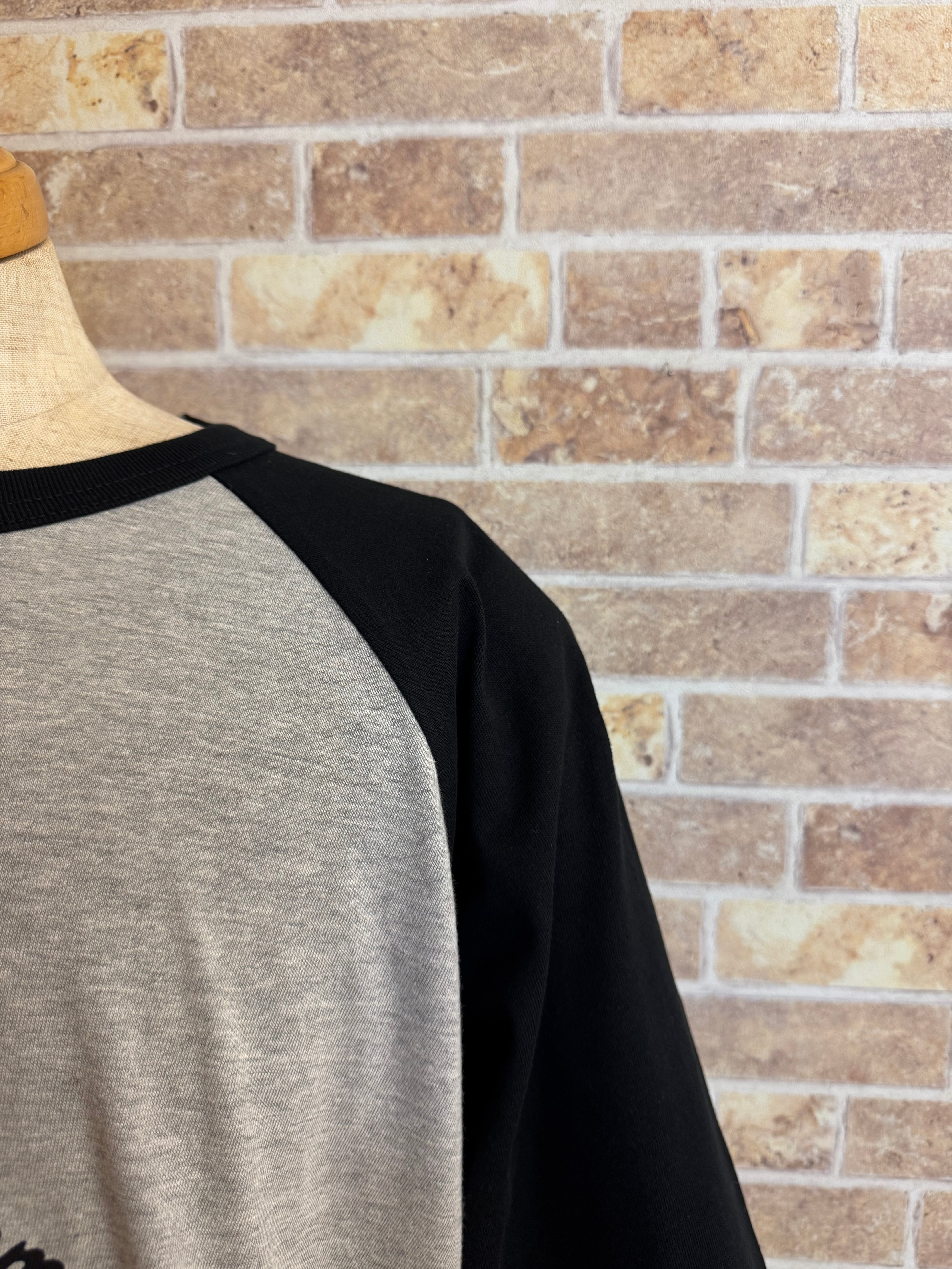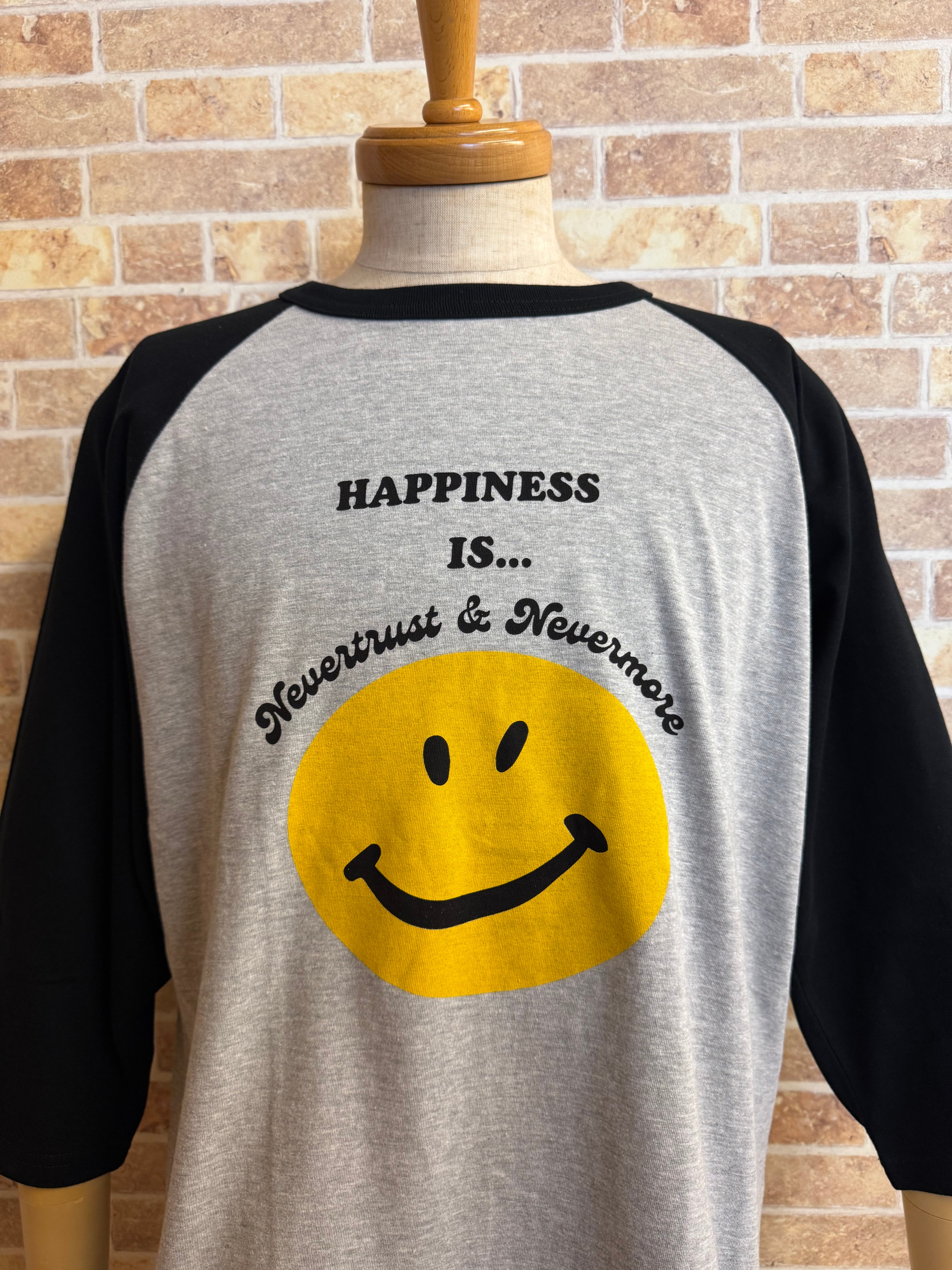 【ネバートラスト】HAPPINESSラグラン7分袖Tシャツ カラー:グレー/ブラック