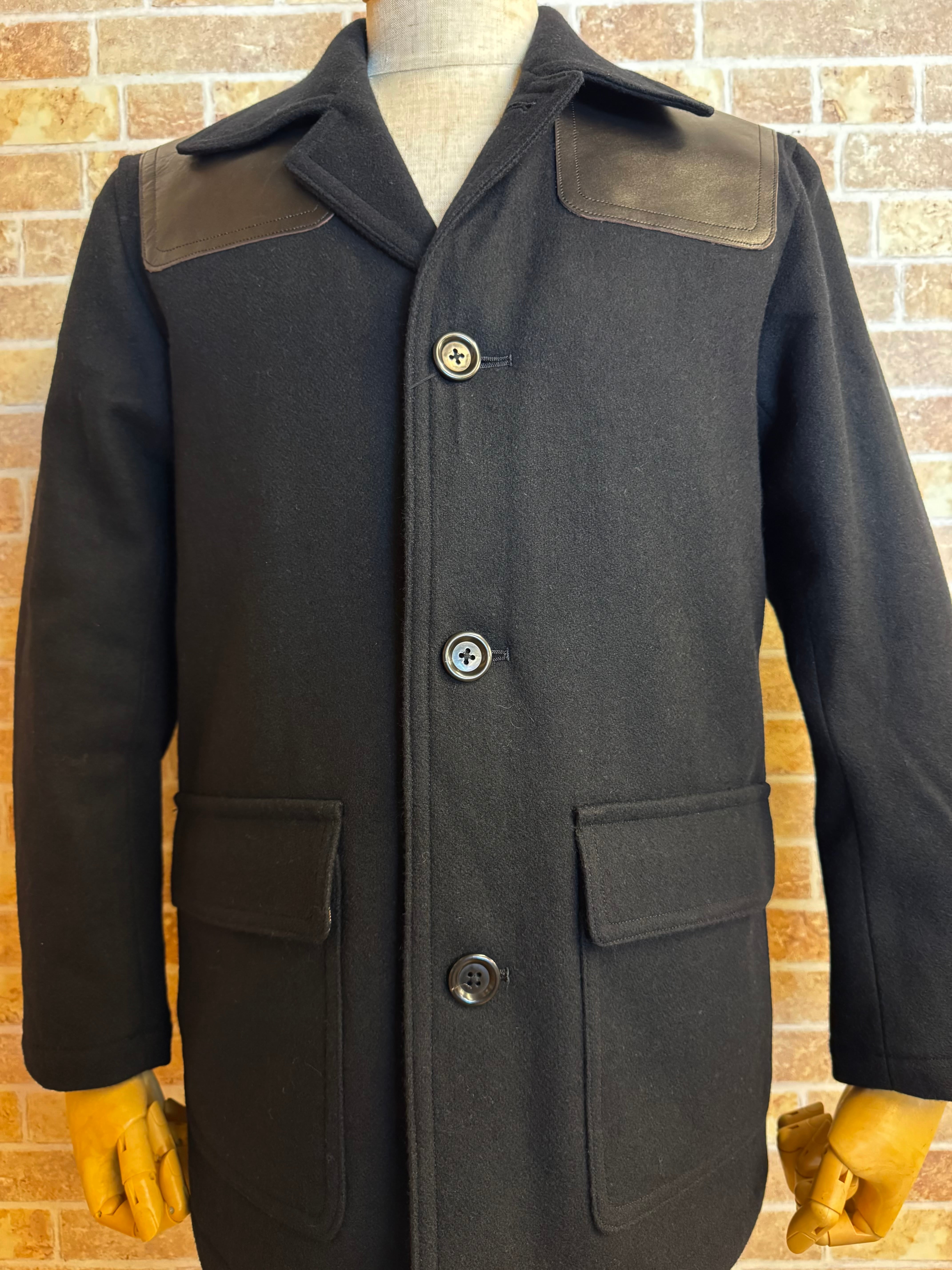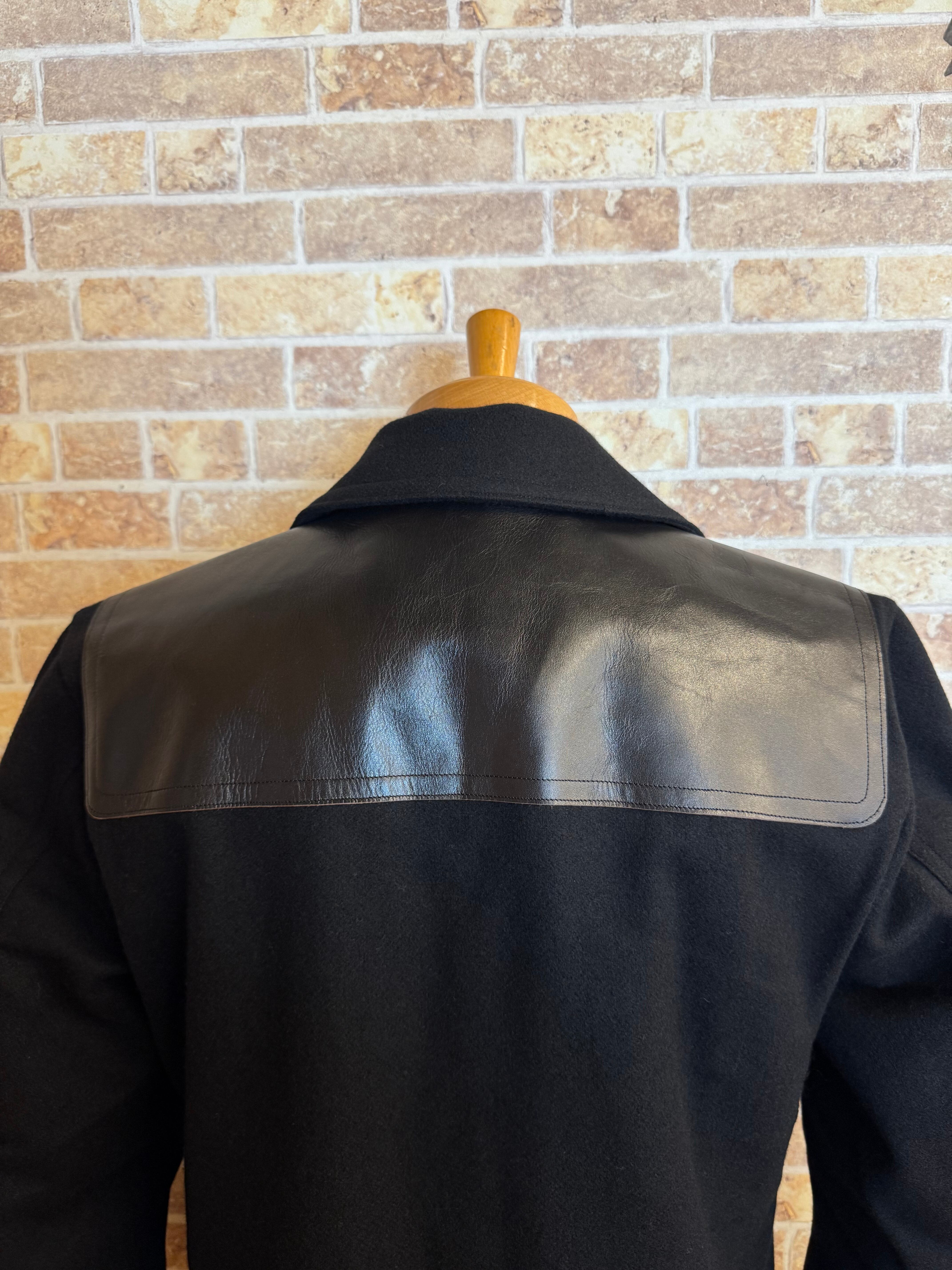 ■国産ウール・ヘビーメルトンを使用し、本革レザーのショルダーの切り替えはGTG PRODUCTSの革ジャンで使用されている、国産なめし(黒牛革・茶芯!)を贅沢に使用しています。