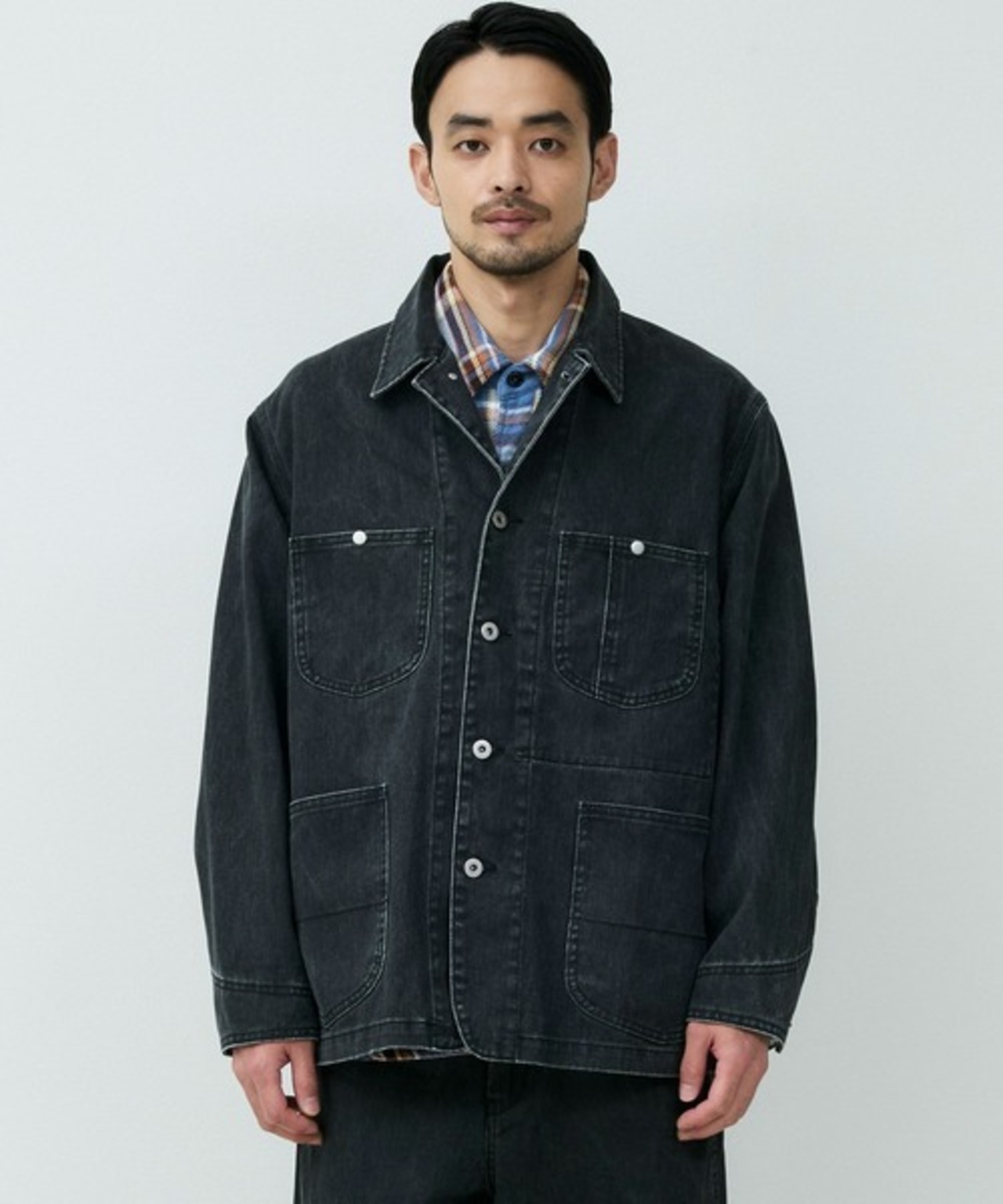 【ジョンブル】ウォッシュドツイルカバーオール カラー:ブラック