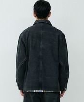 硫化染めのツイル素材を製品加工することで、アタリ感のあるカジュアルな表情に仕上げています。