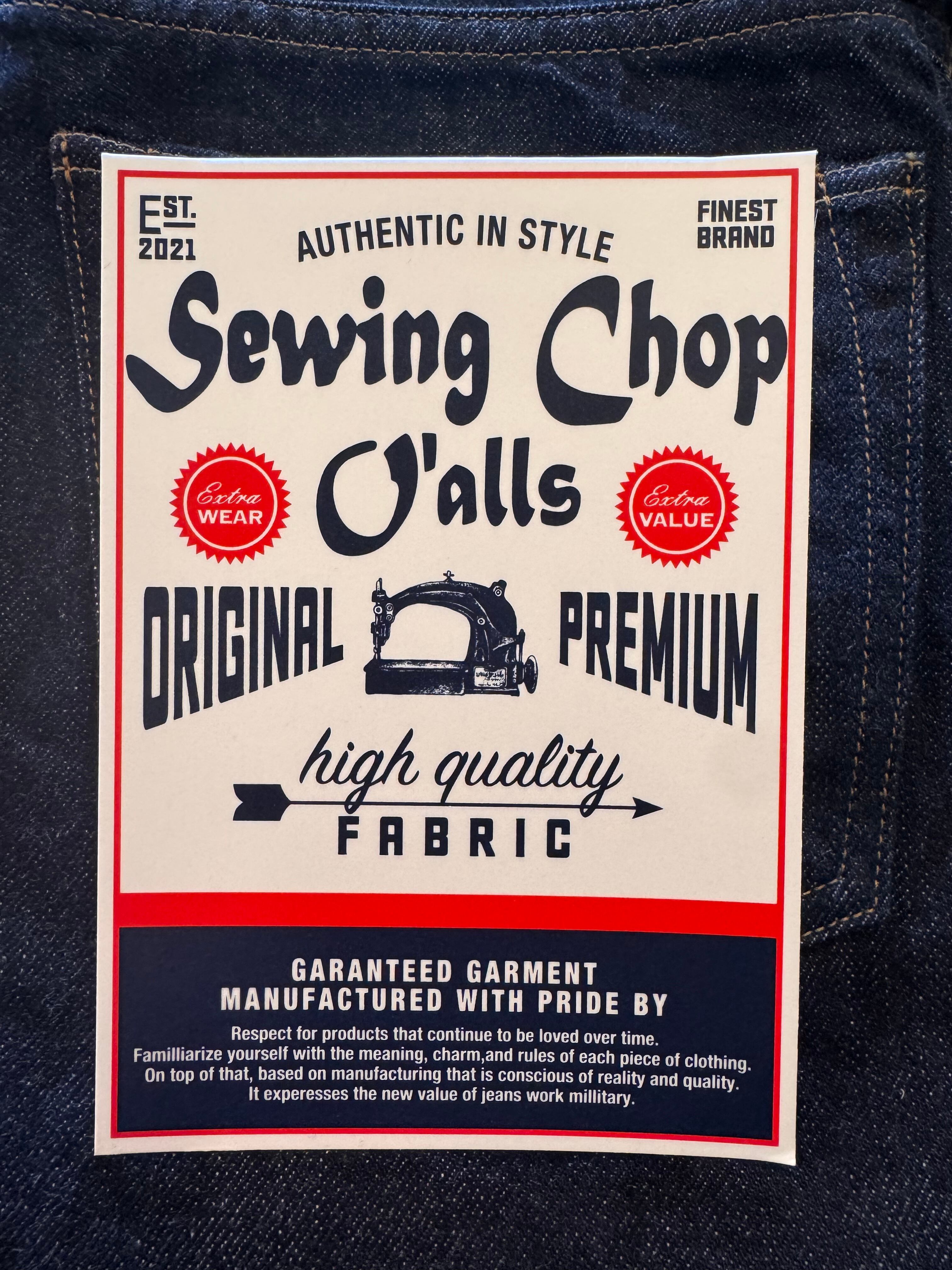 Sewing:縫製 Chop:意匠・品質 O'alls:作業着・衣服