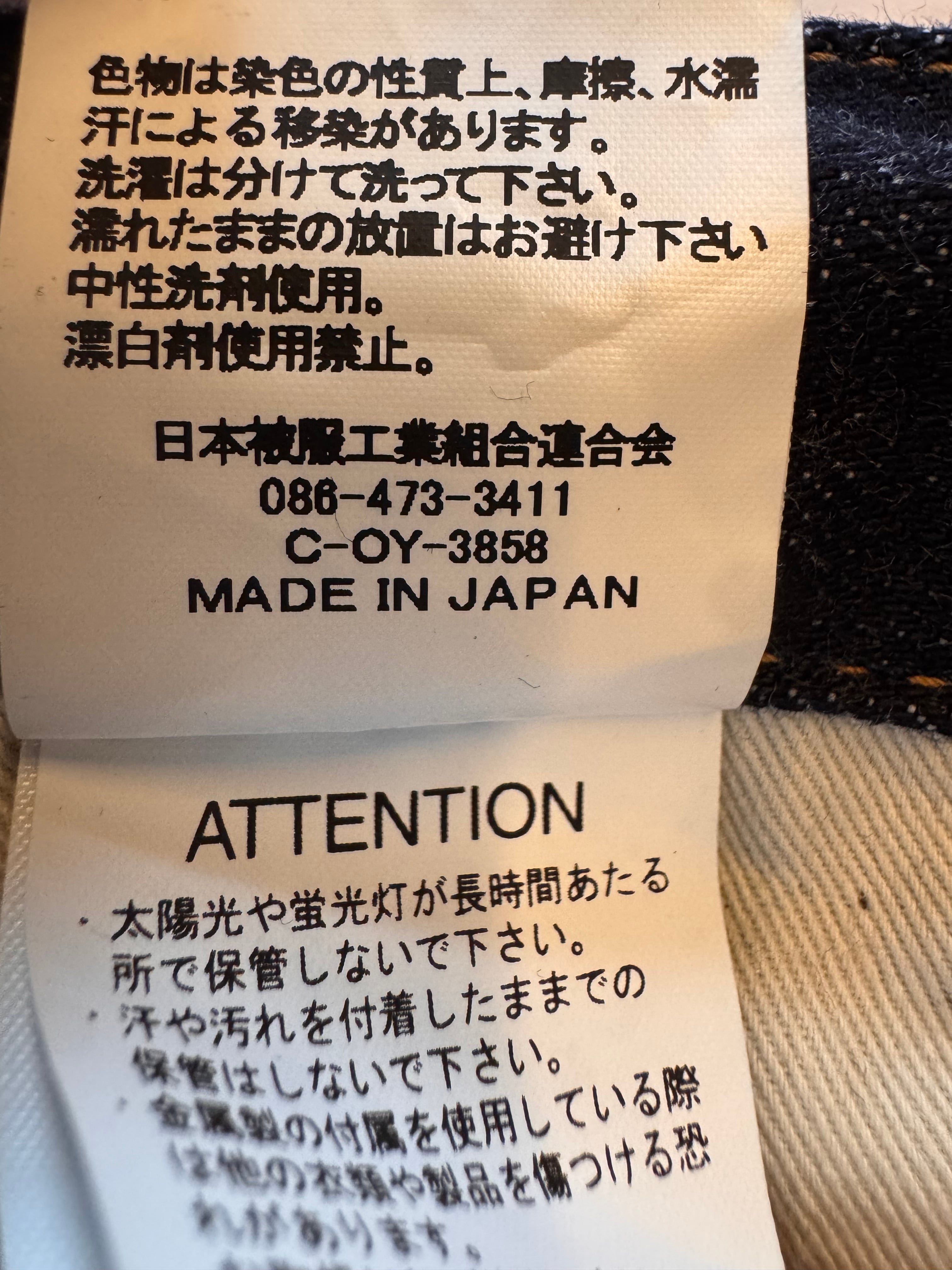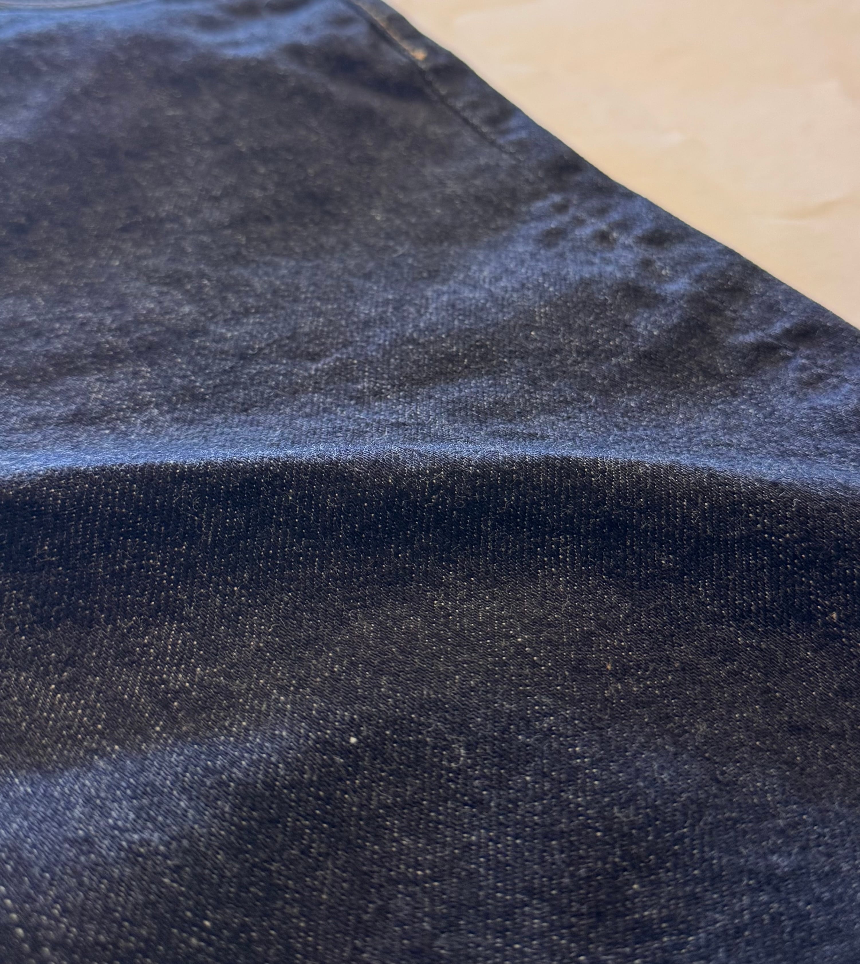 捩じれ防止加工と防縮加工を通常の半分ほどに留めており着こむほどに捩じれや生地の凹凸、ヴィンテージデニム特有の色落ちを楽しんで頂けます。