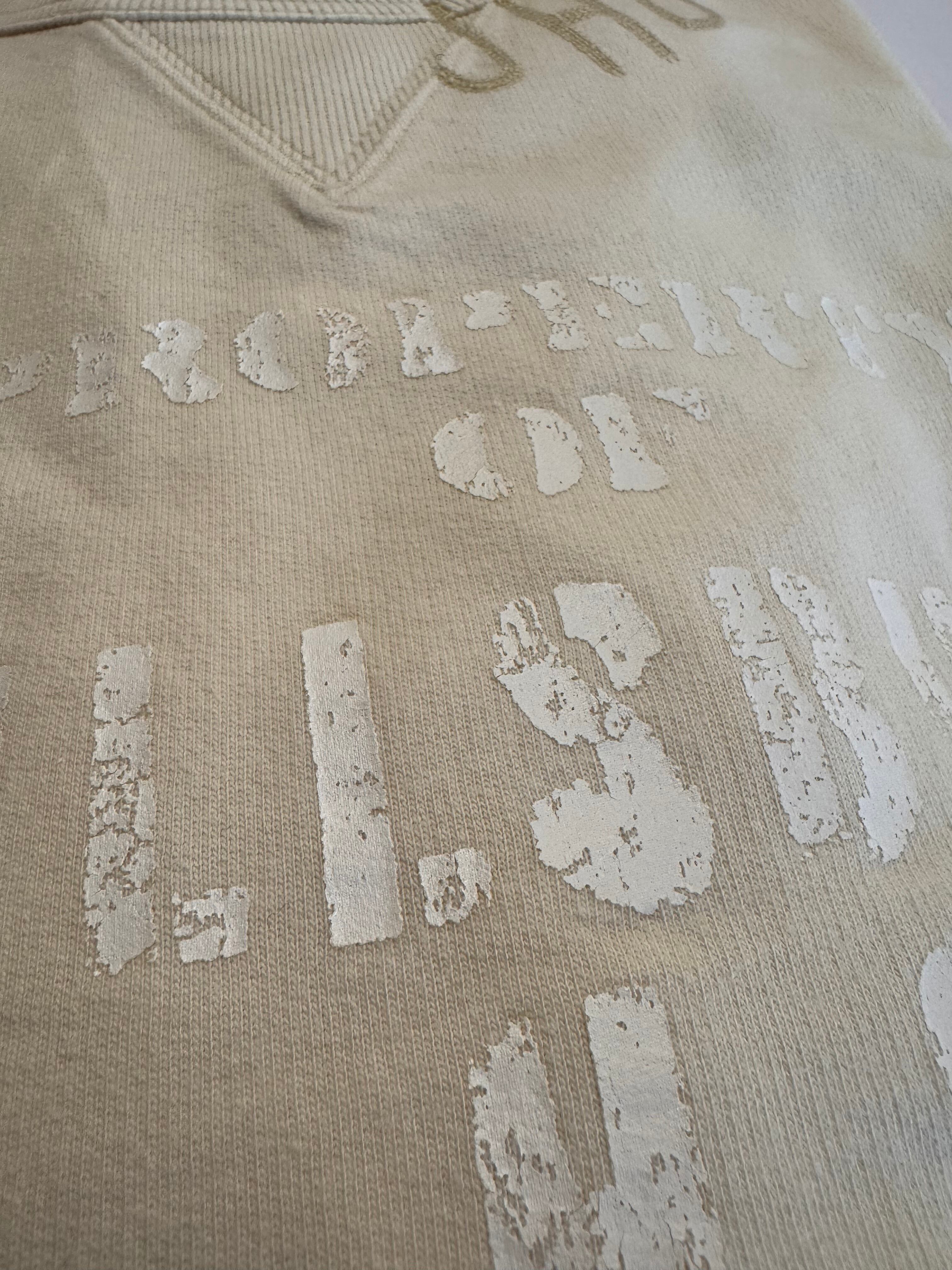 ■ ミニ裏毛クルーネックスウェット(ステンシル風プリント+衿元刺繍)