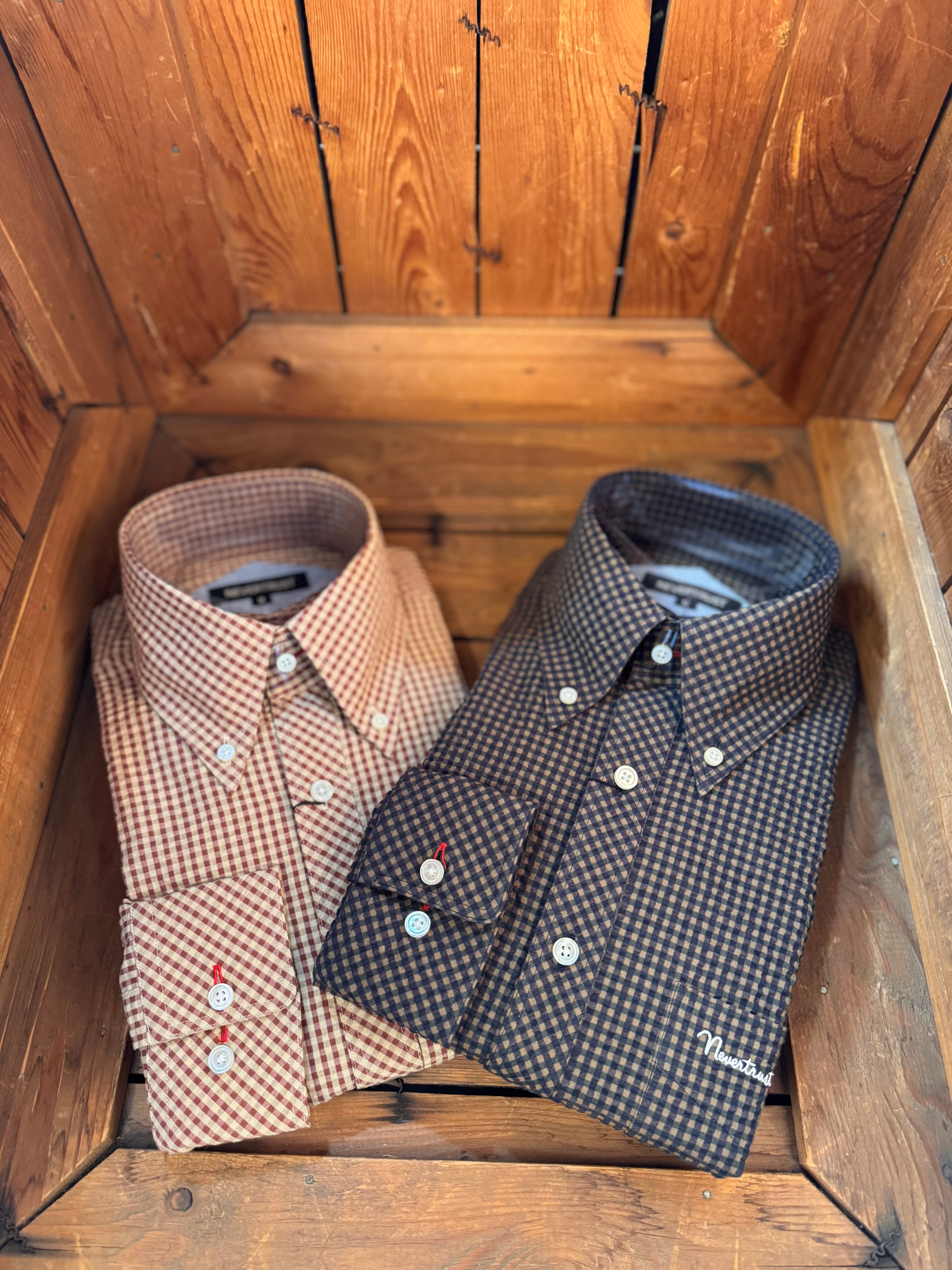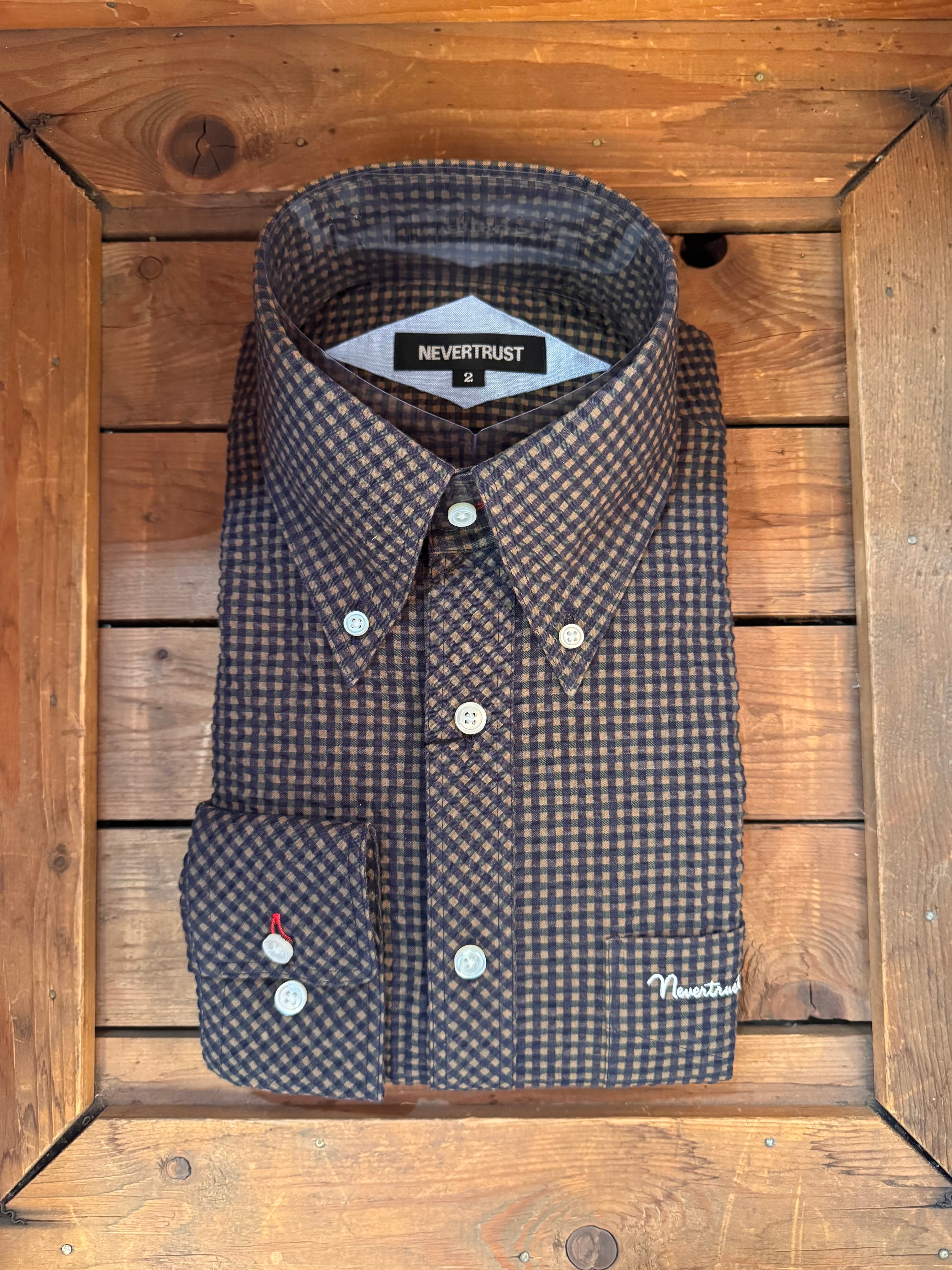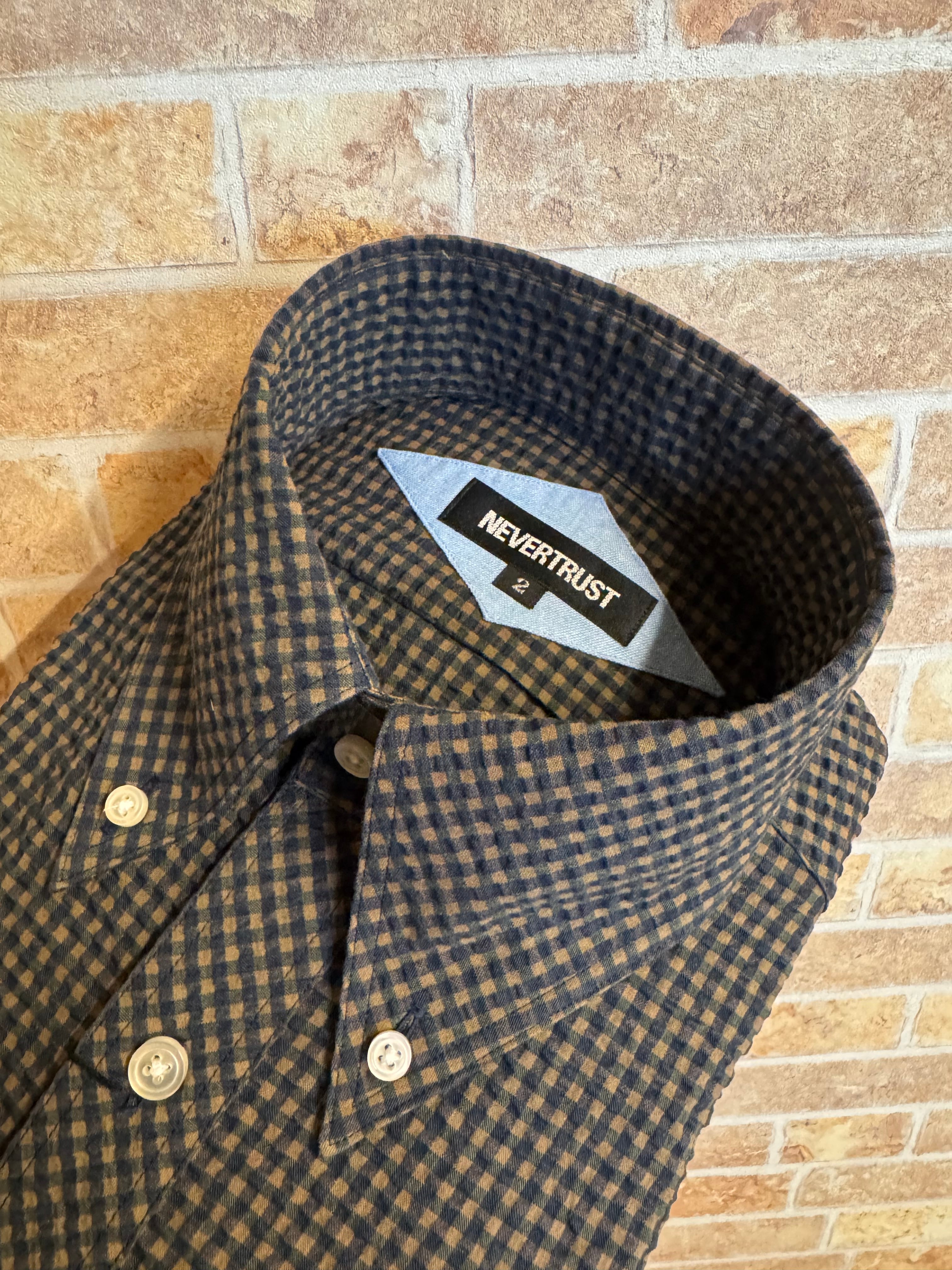 【ネバートラスト】ギンガムチェック シアサッカー長袖BDシャツ カラー:ブラック