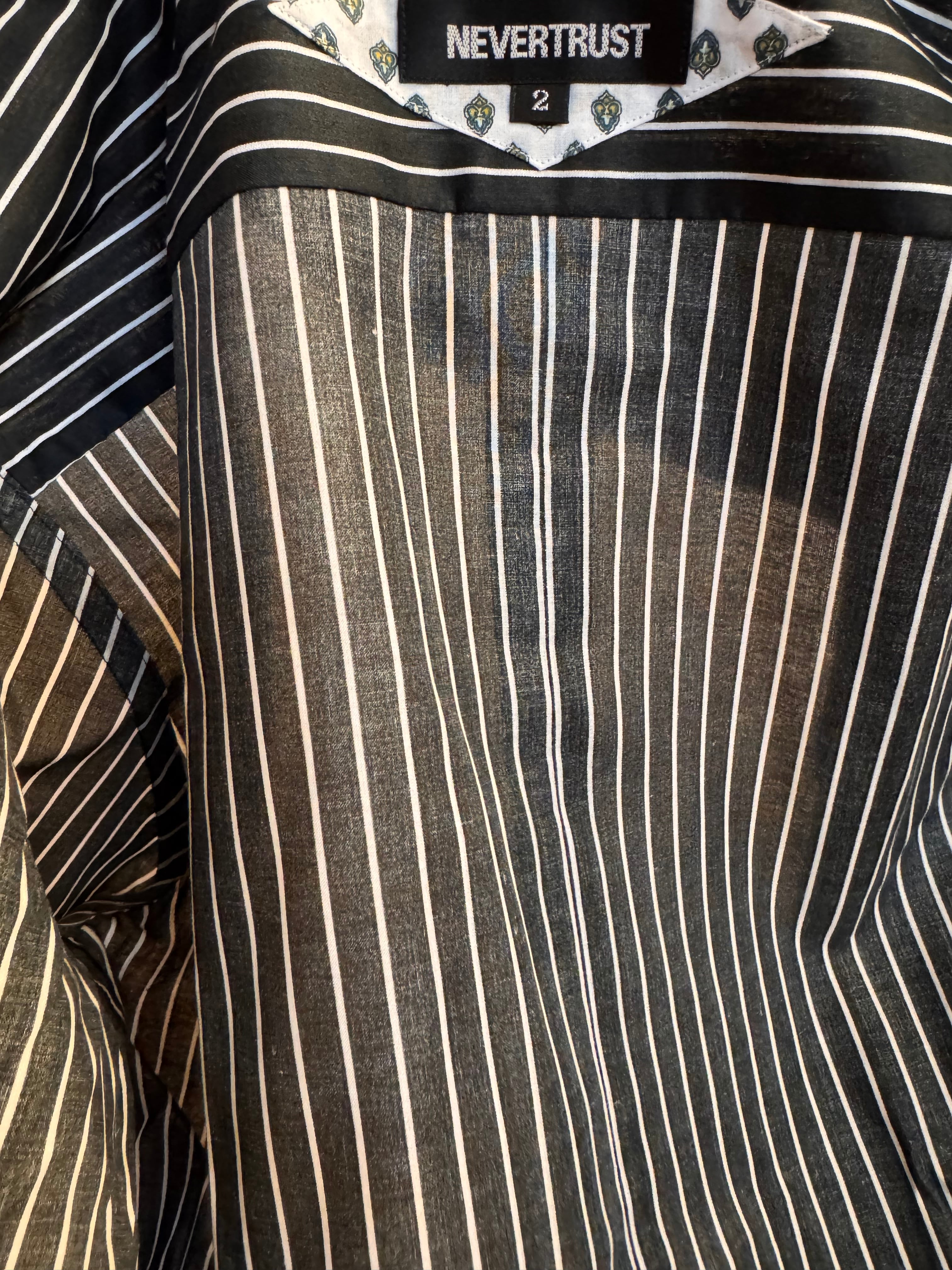 【ネバートラスト】クレリック(ストライプ・小紋)ショートラウンド隠しBDシャツ カラー:ブラック